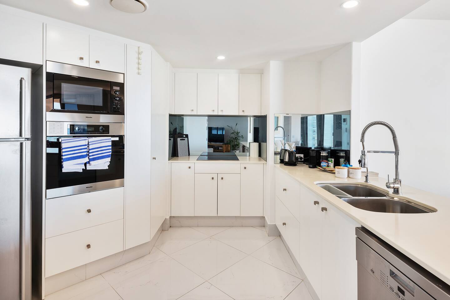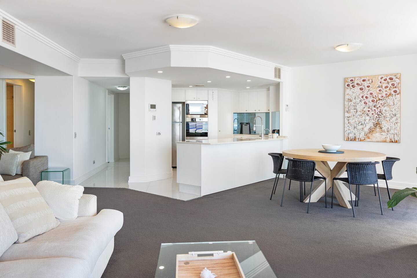 This apartment is a part of our family home, but with our children grown up and busy working we can rent their beautiful apartment out to you. Our recently refurbished apartment is complete with two large bedrooms and en-suites. The master bathroom with beautiful marble bathtub. Two large, comfortable sitting areas and a large dining space overlooking the balcony and up to Surfers Paradise.