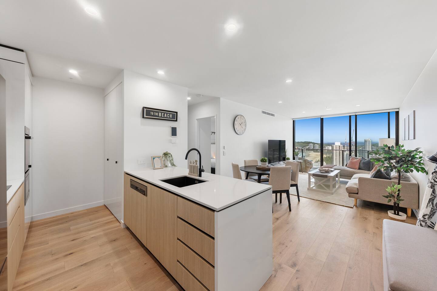 Welcome to your stay in Burleigh, where sun-kissed sands and vibrant local life await you just steps from your door. Nestled on the Gold Coast Highway, your penthouse apartment places you in the heart of Burleigh Heads, a dynamic coastal enclave bursting with character and charm. Just a leisurely stroll away lies the pristine expanse of Burleigh Beach, beckoning you with its turquoise waters and golden shores. Whether you're an early riser seeking the tranquility of a morning walk or a sunset enthusiast craving the perfect backdrop for evening relaxation, the beach is your ultimate playground. Venture beyond the coastline, and you'll find yourself immersed in a tapestry of local treasures. Grandad Jack's Distillery offers a taste of artisanal spirits crafted with care, while Precinct Brewery invites you to savor the flavors of local brews amidst a laid-back atmosphere. For those with a penchant for culinary delights, Paddock Bakery serves up delectable pastries and freshly brewed coffee, perfect for indulgent mornings or afternoon treats. Meanwhile, Los Palmas captures the essence of coastal dining with its fusion of vibrant flavors and relaxed ambiance, inviting you to savor every bite. As the day transitions to night, immerse yourself in the eclectic energy of Light Years, where innovative Asian-inspired cuisine meets creative cocktails in a stylish setting. Whether you're seeking a lively evening out or a cozy night in, Burleigh Heads offers something to suit every mood and preference. With its perfect blend of coastal beauty and vibrant local culture, Burleigh Heads invites you to experience the essence of Gold Coast living at its finest. Your penthouse retreat awaits, promising a stay filled with unforgettable moments and cherished memories. Welcome to your home away from home in Burleigh – where every day is a new adventure waiting to unfold.