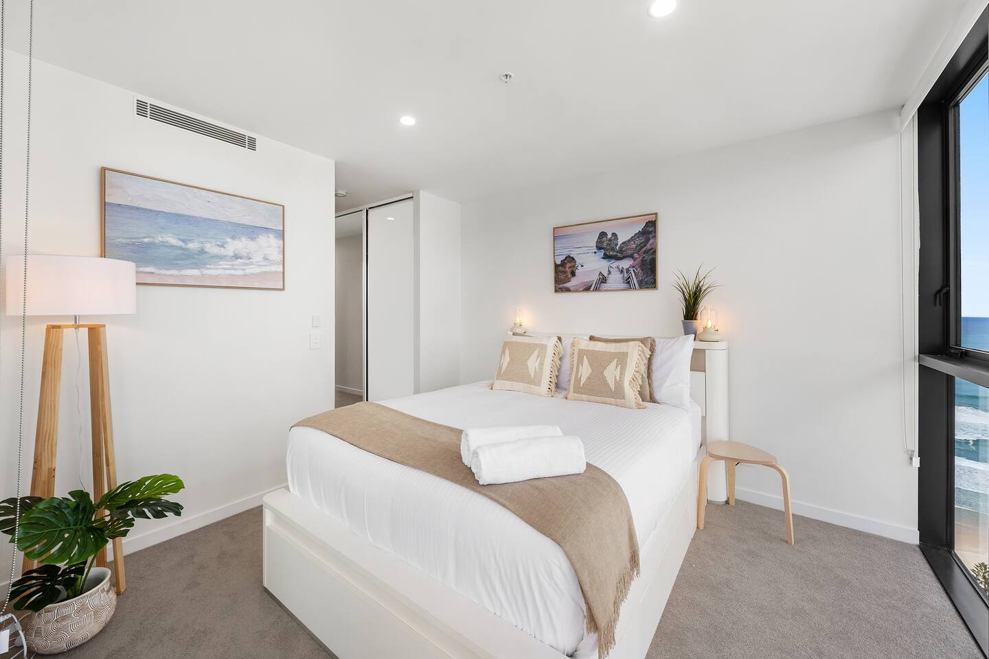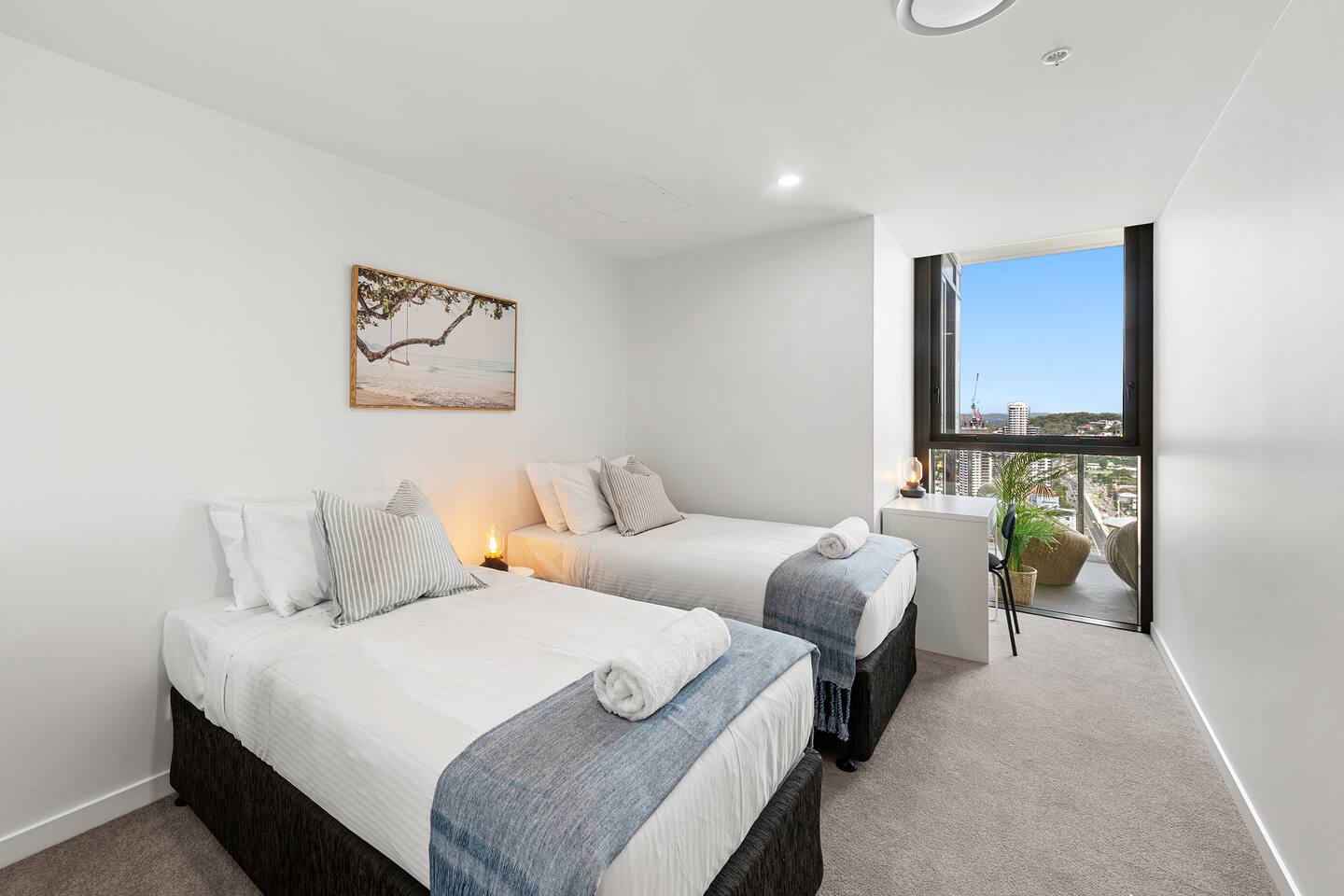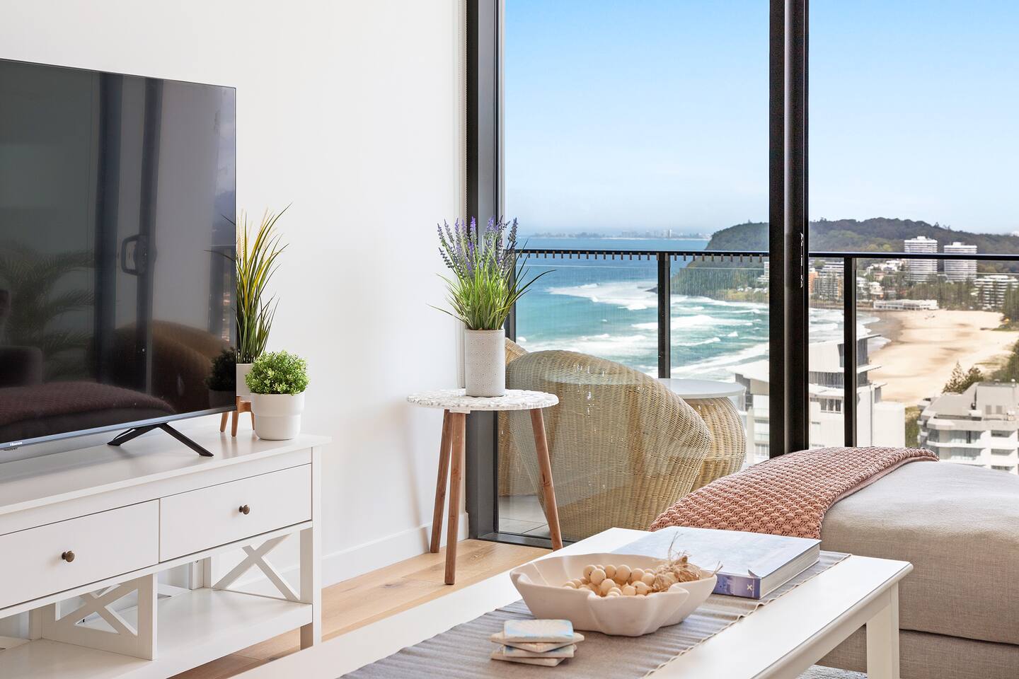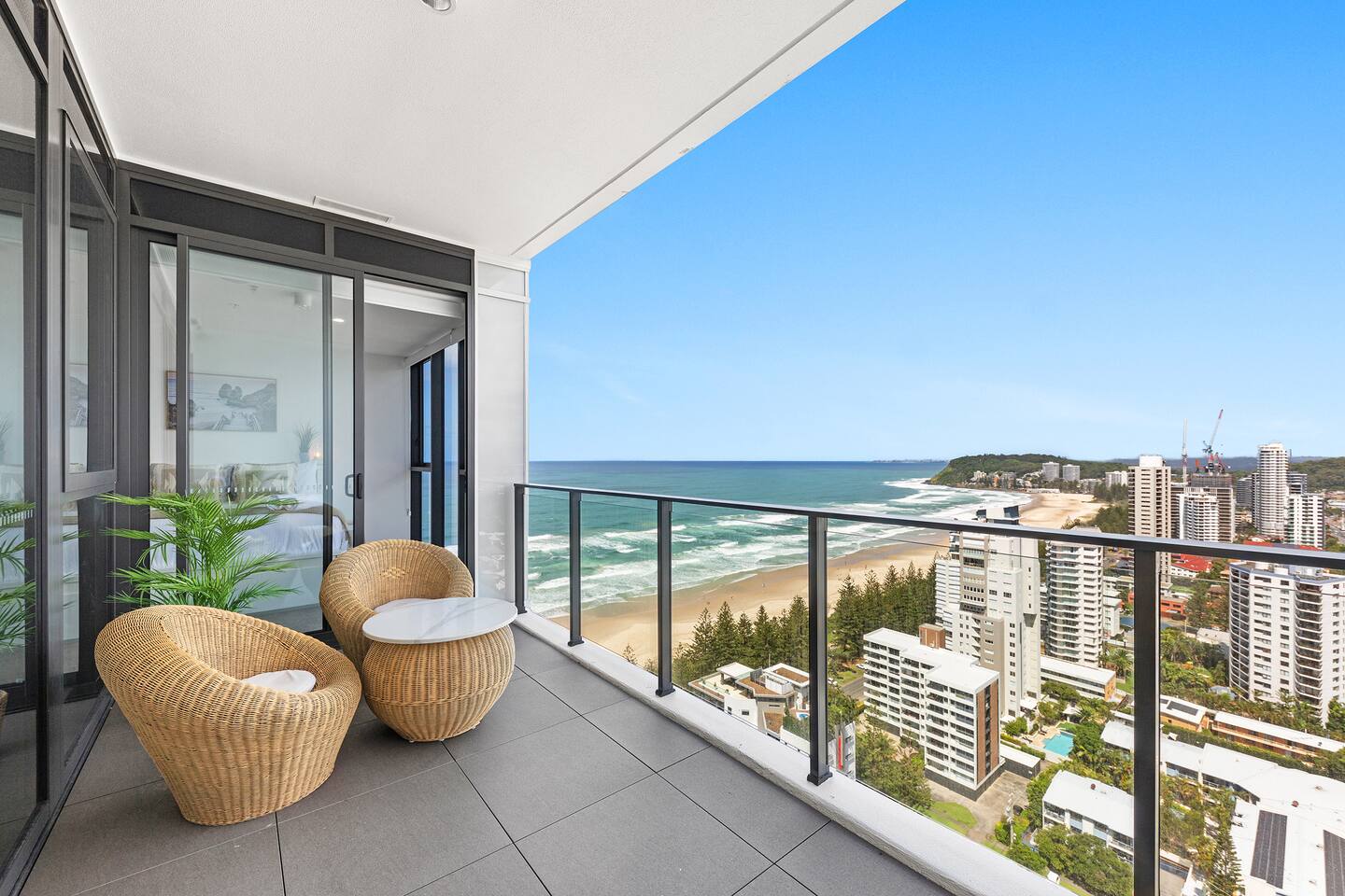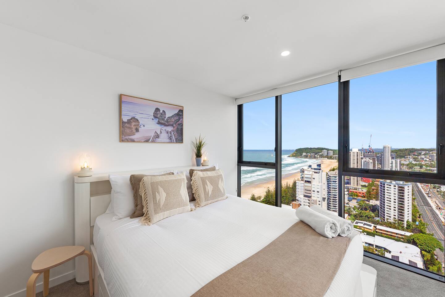 Welcome to your luxurious coastal retreat at the Sandbar building, nestled in the heart of Burleigh - where sun-kissed sands meet vibrant city life. Unveiling a brand new gem in our collection, this stunning 2-bedroom, 2-bathroom penthouse apartment is a sanctuary of elegance and comfort. Situated on the southern side of Sandbar, prepare to be enchanted by sweeping 180-degree ocean views, framed by floor-to-ceiling double glazed windows and expansive balconies. Step into the master bedroom, where absolute beach vistas await. Drift into dreams on a sumptuous queen bed, enveloped in soft lighting, and sink into brand new, premium bedding and pillows. A convenient ensuite and mirrored wardrobes beckon, while a porta cot stands ready if needed. The second bedroom offers versatility with two king single beds, a wardrobe, and a desk, ideal for families or friends seeking tranquility. In the heart of the apartment lies a cozy lounge, adorned with an inviting L-shaped couch and plush velvet cushions. Lose yourself in a captivating book or indulge in an afternoon movie while savoring a glass of wine from the balcony. Behold the unparalleled panorama of Burleigh Beach, the bustling town, and the lush hinterland - a breathtaking sight to behold. Your culinary adventures await in the fully-equipped kitchen boasting top-of-the-line European appliances. Fuel your mornings with freshly brewed coffee from the coffee machine, and savour the convenience of complimentary tea, coffee, sugar, and milk upon your arrival. Step out prepared with provided pool towels, a beach umbrella, and a beach bag, ensuring every day is filled with seaside bliss. Your comfort is our priority, evidenced by the thoughtful inclusions such as complimentary cold drinks awaiting you in the fridge. Immerse yourself in the resort-like amenities of the Sandbar building, including a lap pool, BBQ area, sun lounge, gymnasium, and children’s playzone. With the vibrant cafes, bars, restaurants, and breweries just a stone's throw away, and iconic destinations like James Street precinct and Broadbeach within easy reach, your Gold Coast adventure begins here. Escape to coastal luxury, where every detail is designed to elevate your experience. Book now and embark on your best-ever trip to the Gold Coast. Paradise awaits.