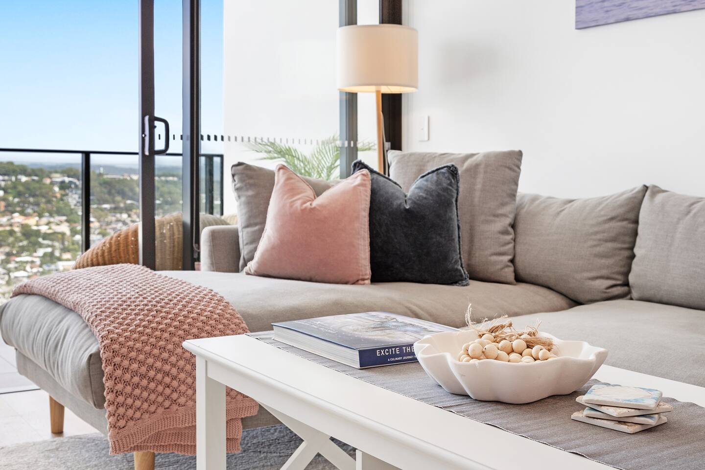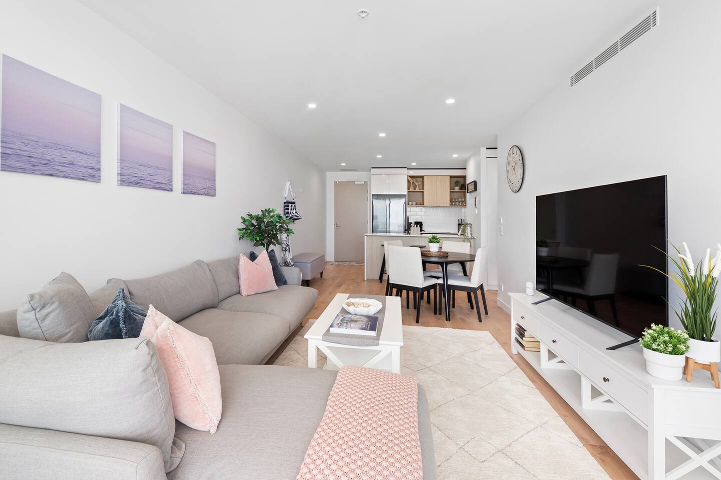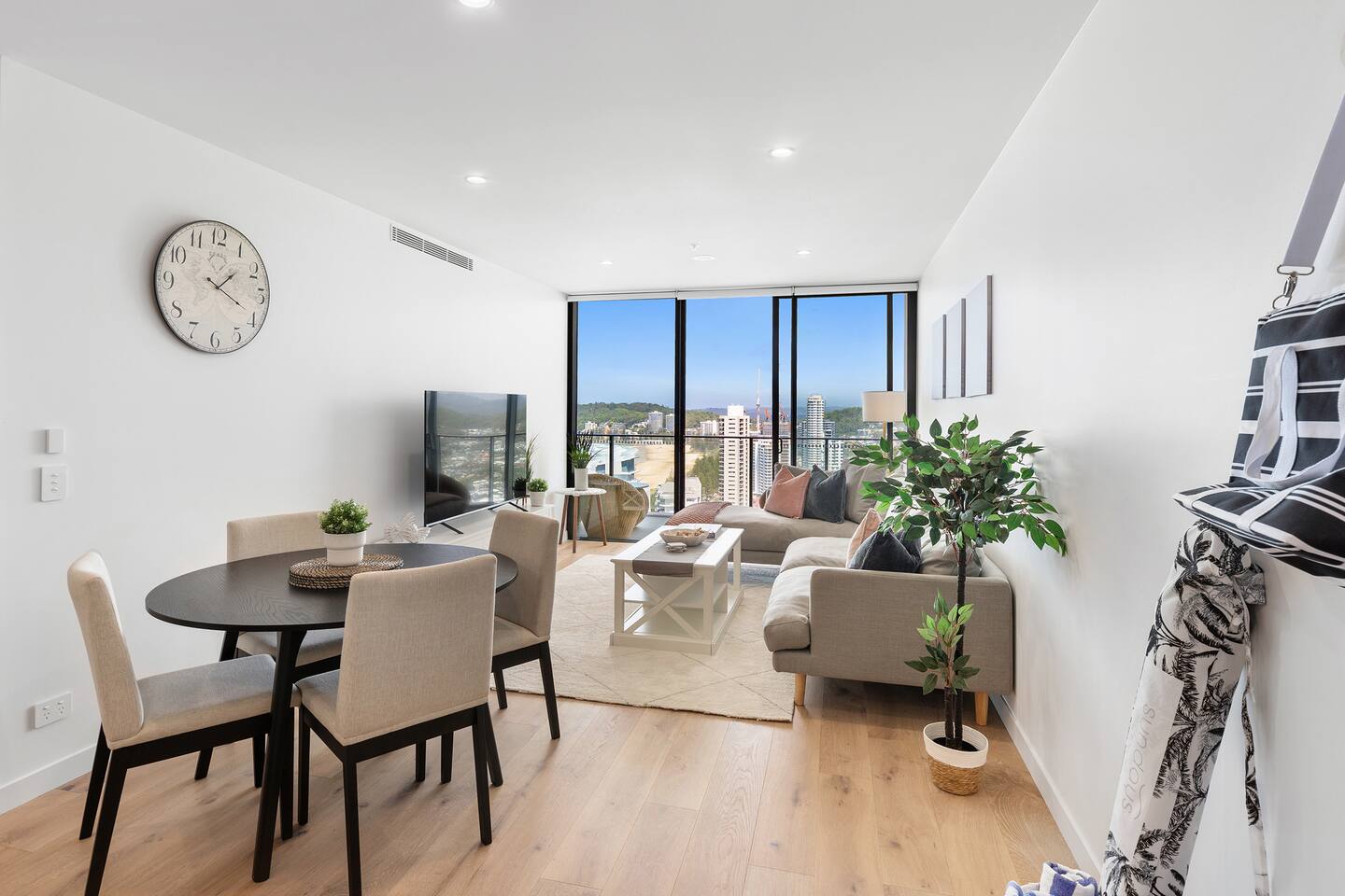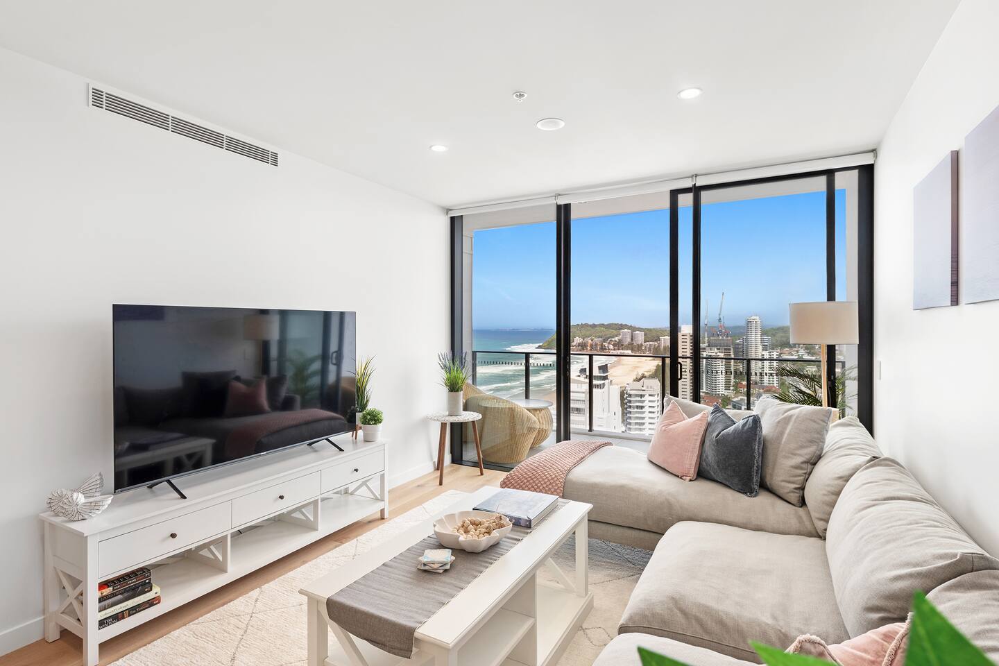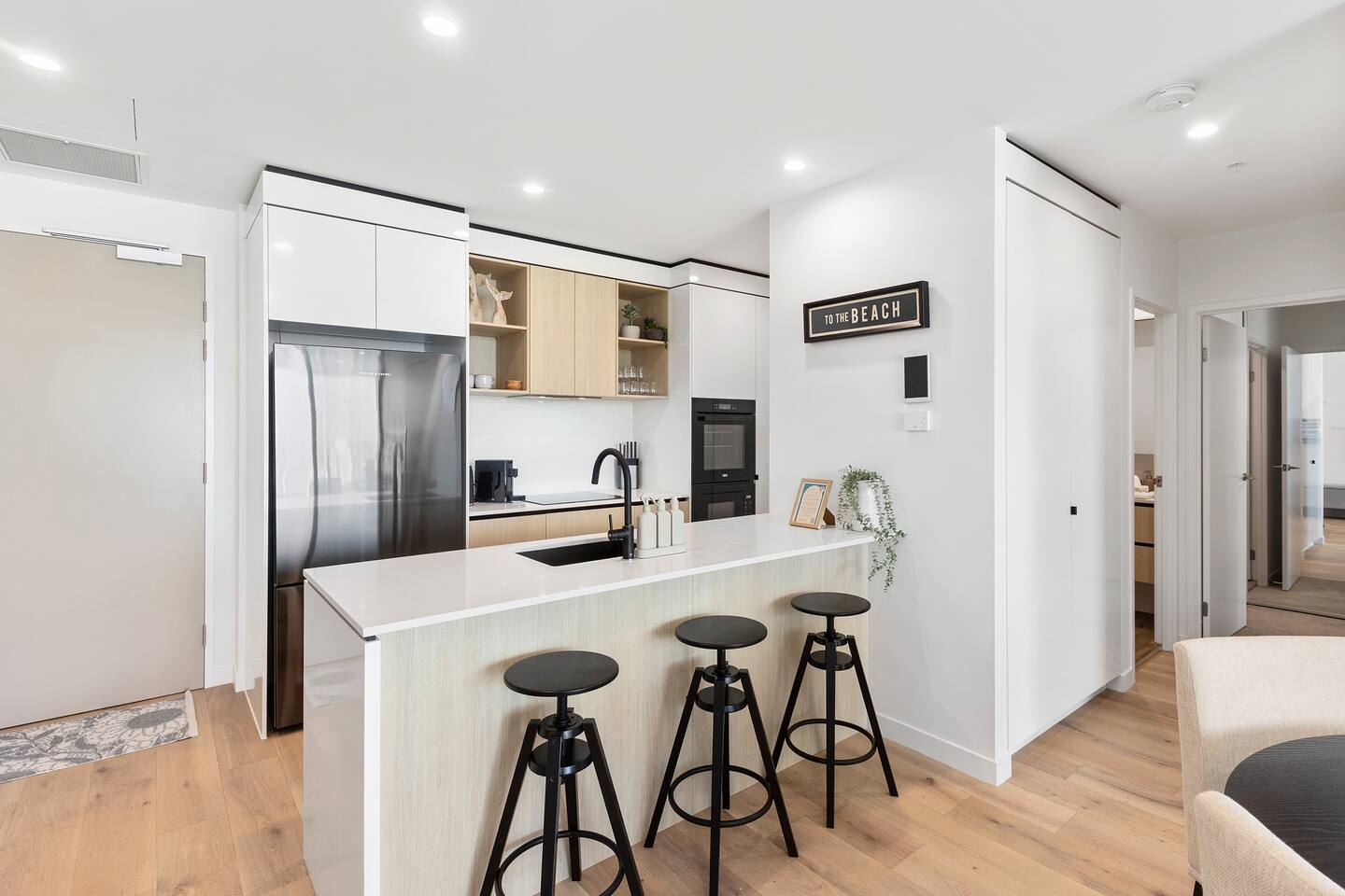 Experience coastal luxury in this brand new 2-bed, 2-bath penthouse at Sandbar, Burleigh. Enjoy panoramic ocean views from floor-to-ceiling windows and spacious balcony. Indulge in resort-style amenities: lap pool, BBQ, gym, outdoor dining and children’s play zone. Steps from the beach, cafes, and bars. Book now for the ultimate coastal getaway!