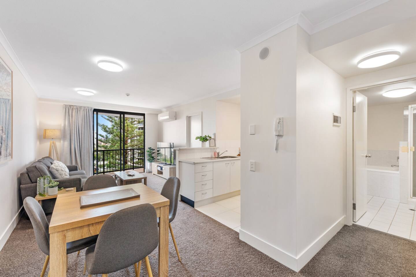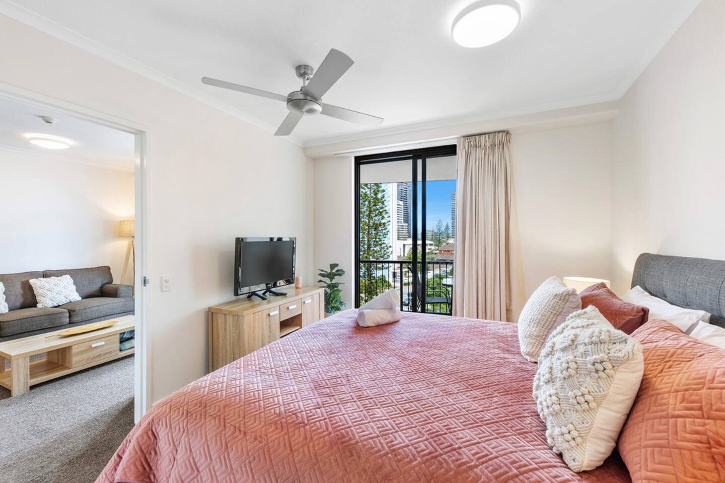 Location, Location, Location! Step outside, and you're just moments away from sinking your toes into the golden sands of Broadbeach. Picture lazy strolls along the shoreline or catching those early morning waves – the beach is practically your backyard! And for the shopaholics in the house, we've got a treat for you – directly across the road lies the fashion paradise, Pacific Fair shopping centre. Retail therapy, anyone? Modern Paradise Retreat! Step inside your chic abode, where modern meets comfort. Every inch of this space is a testament to relaxation and style. The living area is a haven of contemporary design, adorned with all brand-new furniture that'll make you feel like you stepped into a lifestyle magazine. Sink into the plush sofa and unwind after a day of beach fun or shopping sprees. Balcony Bliss! Sip your morning coffee or indulge in a sunset cocktail on your private balcony, overlooking the bustling heart of Broadbeach. It's the perfect spot to plan your day's adventures or simply soak up the energetic vibes of this fantastic locale. Gourmet Delights Await! Feel like a culinary wizard? The fully-equipped kitchen is ready for your culinary masterpieces. Whip up a delicious meal or simply enjoy takeout from the myriad of nearby cafes and restaurants. The choice is yours! What's Nearby? Everything! Apart from the beach and shopping haven, Broadbeach is a hub of entertainment and excitement. Jupiters Casino, The Star Gold Coast, and the vibrant nightlife of Oracle Boulevard are all within arm's reach. Your weekend is about to be filled with endless possibilities! Dreamy Bedroom Comfort! When the day winds down, retreat to your cozy bedroom, boasting a comfy bed that promises a rejuvenating night's sleep. Wake up refreshed and ready to tackle another day of Gold Coast adventures. Parking? Absolutely! Worried about parking? Fear not! Your weekend getaway includes a convenient parking spot – making exploring the Gold Coast a breeze. Book Your Slice of Broadbeach Bliss! Whether you're here for the surf, the shopping, or just the sheer joy of a weekend escape, this one-bedroom gem is the perfect launchpad for your Gold Coast adventures. Don't miss out – book now and make your weekend unforgettable! Note: Actual beach vibes and retail therapy may exceed expectations. Plan your escape wisely!