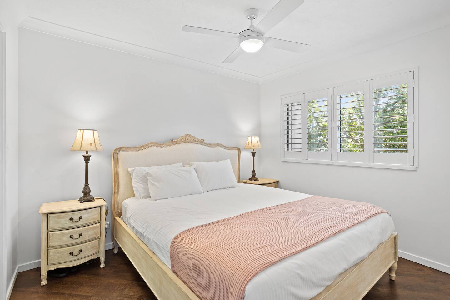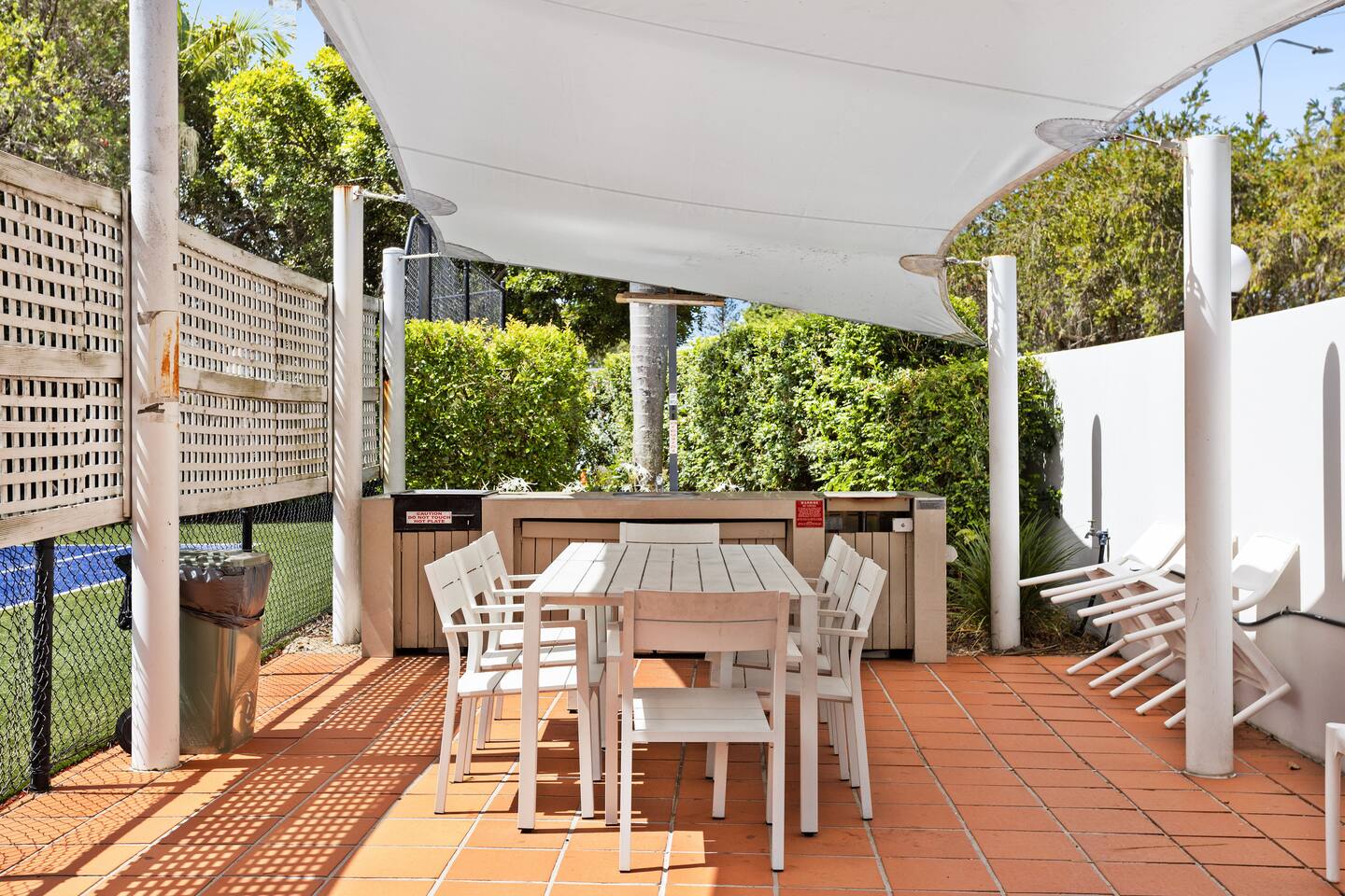 The Space Gorgeously designed, this breezy coastal apartment features a french provincial style that's accentuated by an abundance of natural light. Featuring an open-plan living area, a sleek kitchen, modern appliances, an elegant bathroom, a comfy bedroom, an additional sofa bed, thoughtfully curated decor and a balcony with outdoor seating. Appreciate the soothing vibe of this pristinely designed property. General - Chic 1-bedroom, 1-bathroom apartment - Wi-Fi is available - Close to public transport - Onsite allocated secure parking (1 space) - Air conditioning and heating and ceiling fans available - Private balcony with outdoor seating - Contemporary interiors with chic decor and furnishings - Communal outdoor BBQ area available with outdoor dining - On-site tennis court, outdoor pool, gym and sauna facilities - Great location moments from shops, restaurants and Broadwater Parklands Bedroom - Bedroom 1: 1x King Bed with a TV with free-to-air and streaming options (use own account) - Additional sofa bed available. - Air conditioning and heating available. Living Room - Plush couch - TV with free-to-air and streaming options (use own account) - 4 -Seater dining table available. Kitchen - Fully equipped with cookware, utensils and cutlery. - Toaster, kettle, coffee machine and microwave. - Oven and electric stovetop available. Bathroom & Laundry - Sleek bathroom available. - Laundry unit available with a washer and dryer combo. - Travel essentials, towels and hairdryer provided.