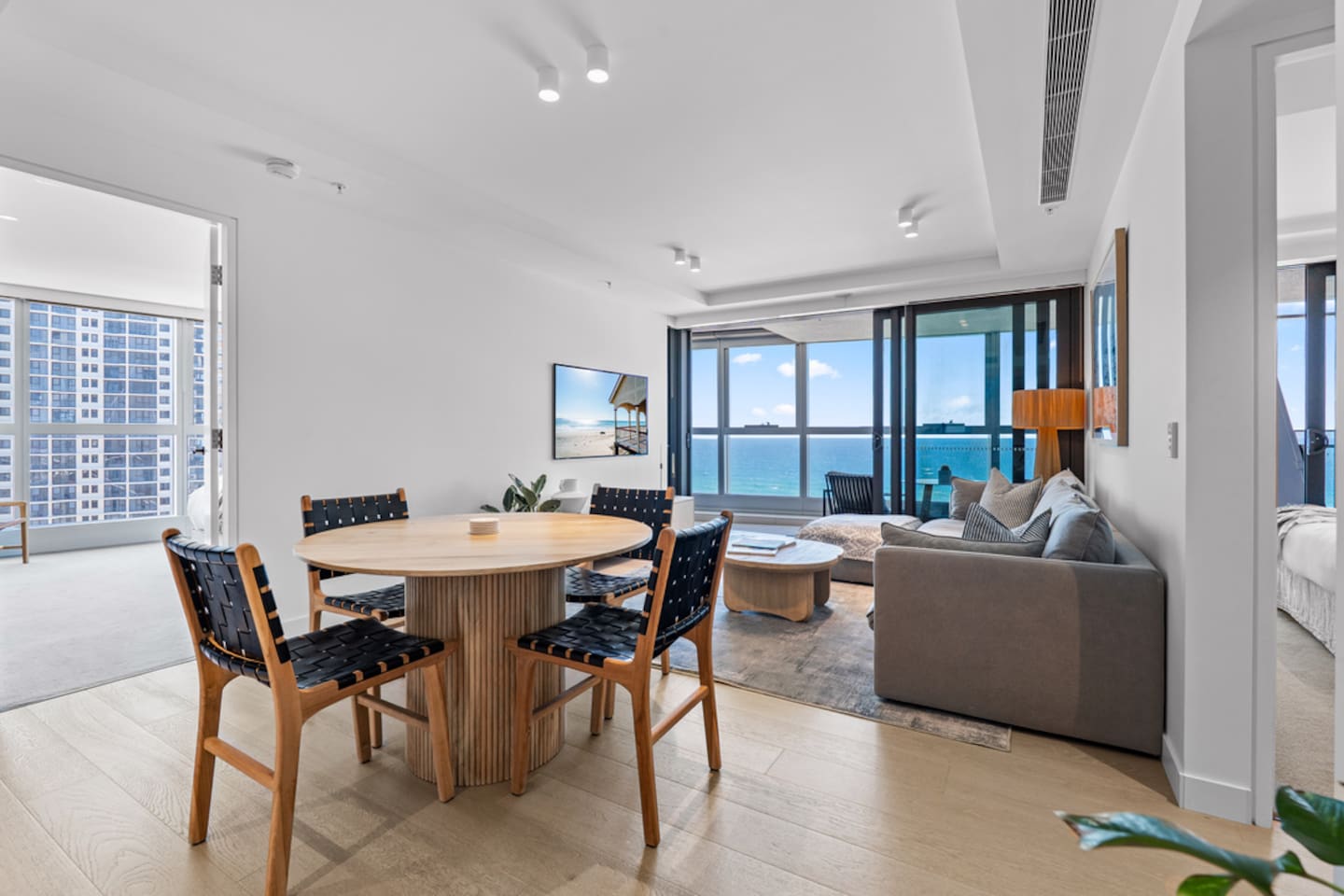 Experience true luxury in this impeccably styled apartment boasting absolutely unsurpassed ocean and skyline views. Every detail has been thoughtfully curated with brand-new, modern furnishings designed for comfort and elegance. The space is highly functional, spotlessly clean and filled with thoughtful extras including body boards, baby cot, hotel-quality linen, fast Wi-Fi and a fully equipped kitchen. A refined, relaxing retreat where premium living meets unforgettable views.