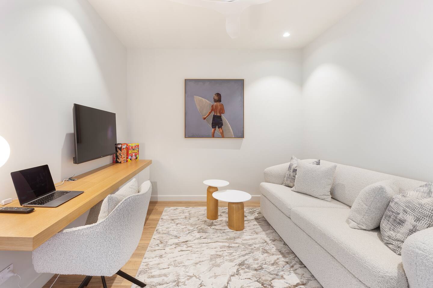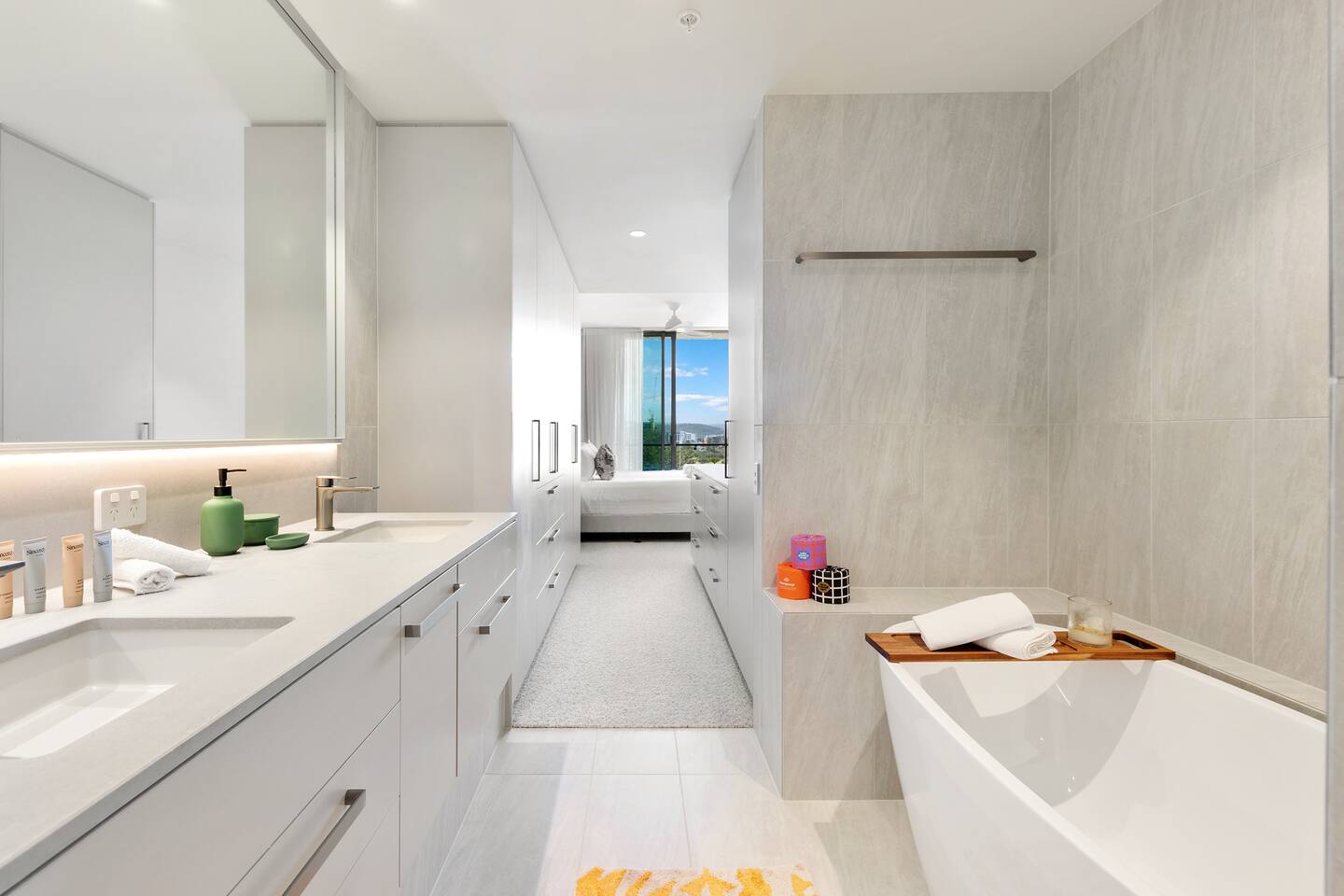 Welcome to Paradise at Miles Residences on the iconic Kirra Beach. Step into the sanctuary of the well-appointed master bedroom, where you are welcomed by vistas of the beach with direct balcony access, a luxurious king-sized bed featuring premium linen and pillows and a ceiling fan for comfort, a wall-mounted TV for relaxing, a walk-in wardrobe with ample storage, an elegant bath, dual sinks for two, and a spacious rain shower with a removable head. The second bedroom features hinterland and ocean views and direct access to the balcony. It has a ceiling fan for comfort, ample wardrobe space, and a luxurious king-sized bed that can also be configured for two singles for families or friends travelling together. The second bathroom features a rain shower, toilet, amenities and a hair dryer for your convenience. You will find a washing machine, dryer, iron, ironing board, mop, and stick vacuum in the laundry to support your needs. The multi-purpose room has a dedicated office desk and chair, a wall-mounted TV for the kids to chill, board games and a fold-out queen-sized sofa bed. There is a fully equipped kitchen with state-of-the-art appliances and all the comforts you need to cook and bake as you would at home. Complimentary coffee, tea, sugar and milk are provided to get your holiday underway. The lounge has a 6-seater dining table and chairs, a stunning modular couch, a wall-mounted TV, and a soundbar. You can lose yourself in the incredible ocean views or watch a movie here. Enjoy Al-fresco dining on the balcony or relax and soak up the tranquillity and stunning views. Step out ready for your beach adventure or enjoy a lovely picnic in the park with the provided beach bag, cool cabana sunshade, picnic basket, rug, or cheeseboard platter. A large umbrella is available for rainy days. Immerse yourself in the luxury resort-style amenities at Miles Residences. Get your daily dopamine hit at the gym. Lounge by the 25m heated pool or have a BBQ overlooking the iconic Kirra Beach before grabbing a bottle of rose from the downstairs bottle shop. You are in the heart of Coolangatta, with endless dining options, from cafes to pubs, surf clubs, and stunning coastal dining options. Your coastal adventure begins here. I highly recommend Siblings Restaurant across the road and Pipis Restaurant, located at the famous D-Bah Beach around the corner. For those passionate about wellness, Balance Yoga Studio is nestled in Griffith Street Coolangatta, where you can get your yoga fix. Native State Bathhouse is located towards the airport at the end of Marine Parade to get your Zen on. You are surrounded by endless world-class coastlines and some of the world's best surf breaks. The Gold Coast airport is a 5-minute drive away. Welcome to your luxurious getaway. Book your ultimate stay today!
