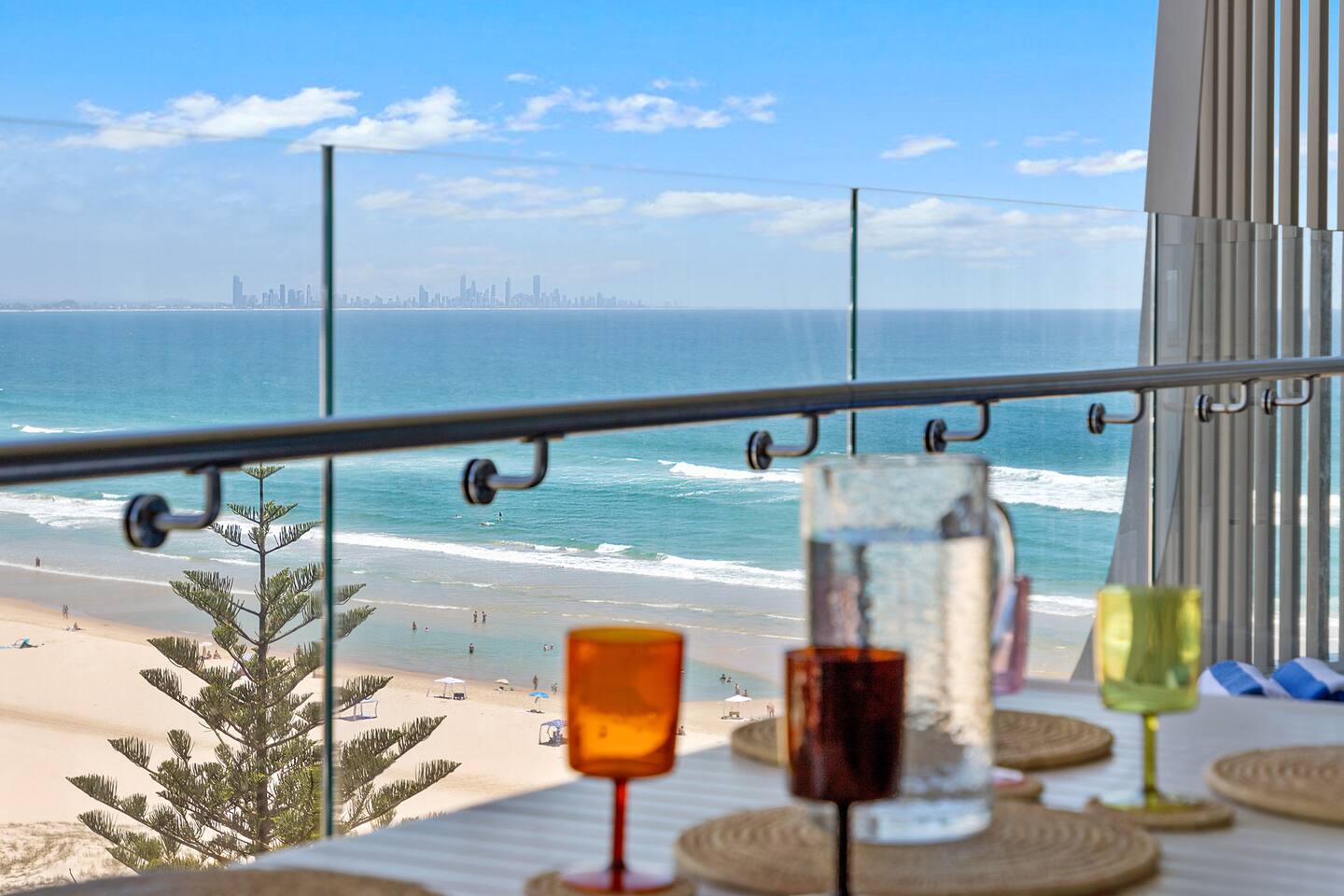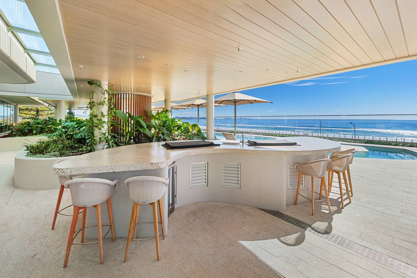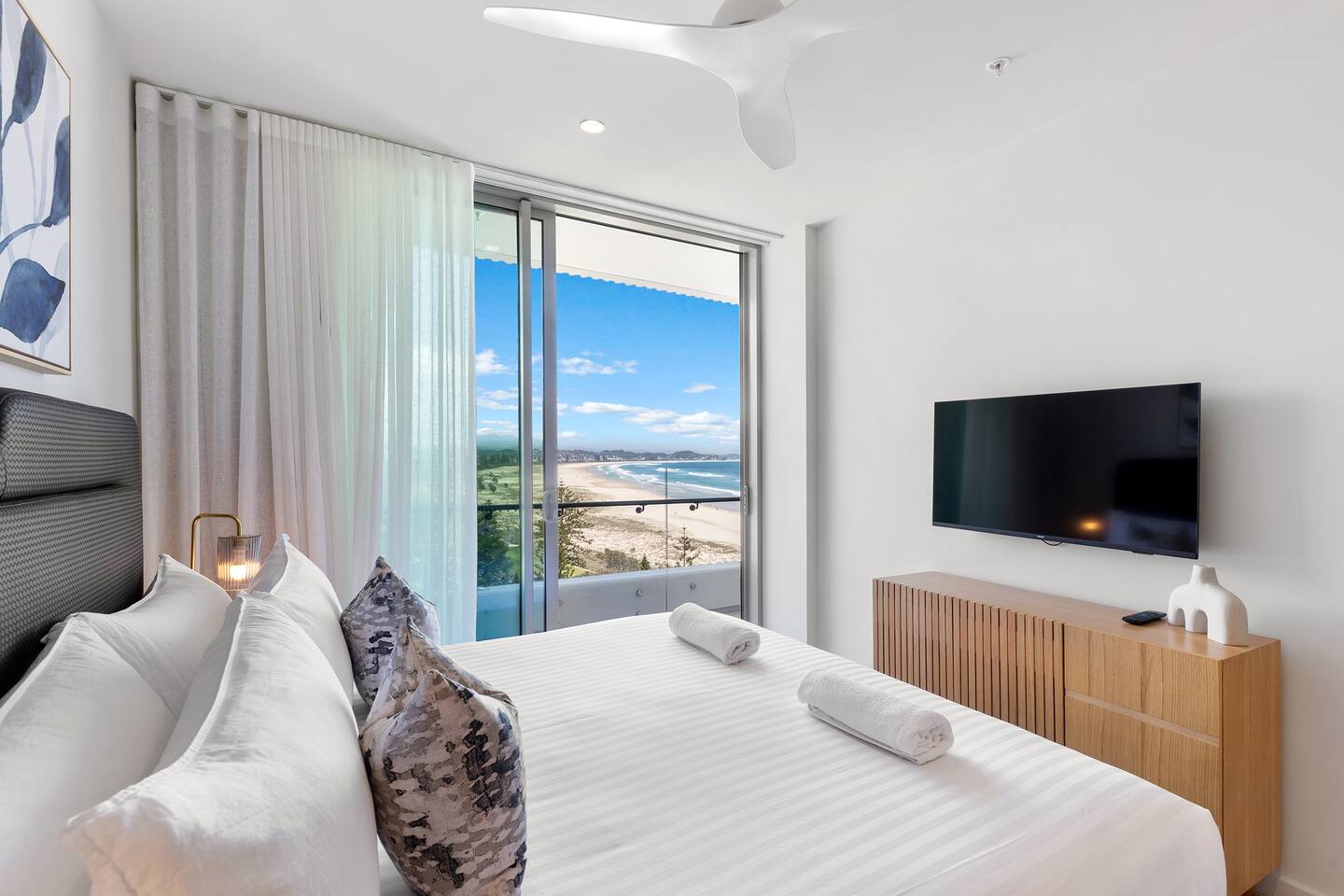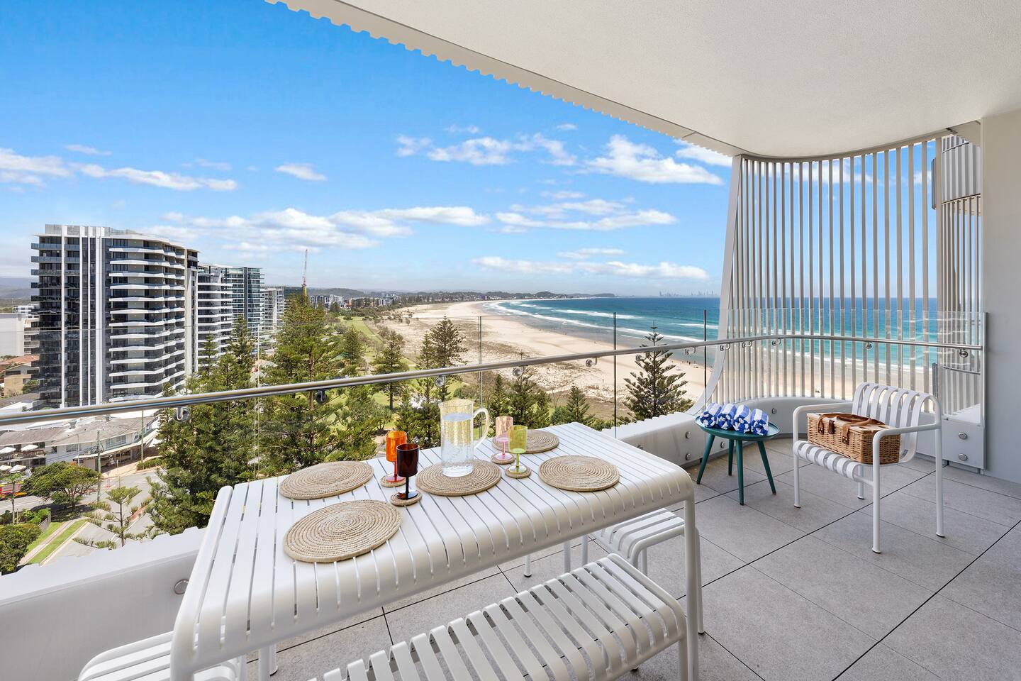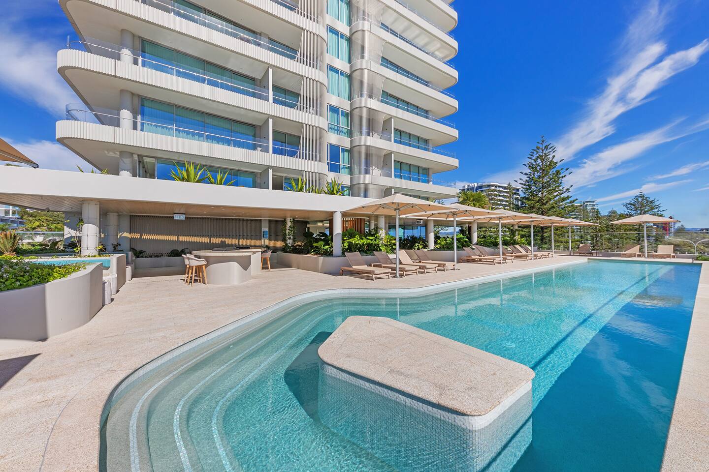 Experience coastal luxury in this brand new 2-bed, 2-bath, beautifully appointed beachfront apartment. From level 10, enjoy northwest-facing views of Kirra Beach & the Hinterland while sipping on a cocktail on the spacious balcony at sunset. Indulge in resort-style amenities: a hotel-style heated 25-meter pool, gym, BBQ area with panoramic ocean views of the iconic Kirra Beach, and one secure basement car parking space. Steps from the beach, cafe and bars, book your stay today!