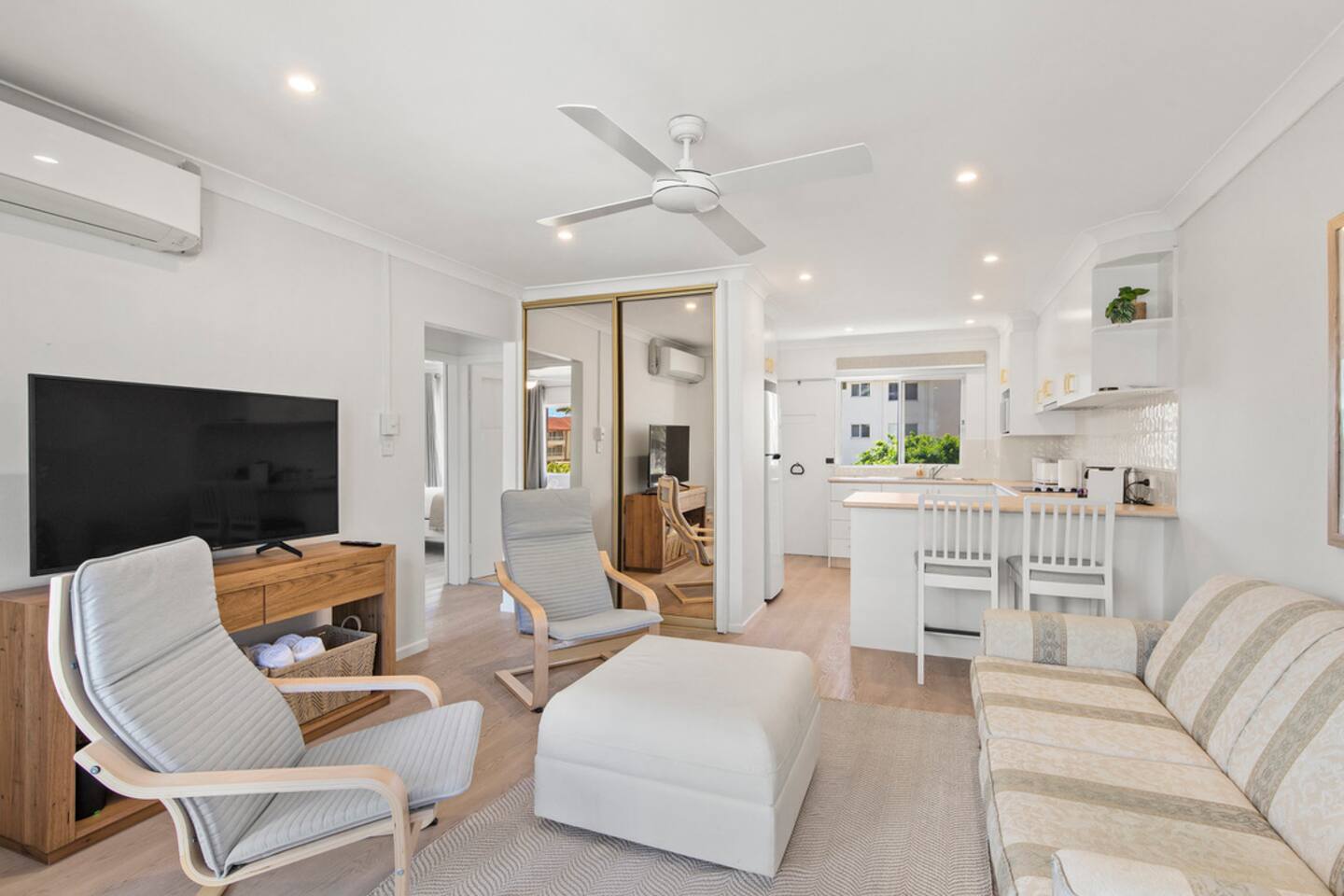 Welcome to Time & Tide, a beautiful beachfront apartment at iconic Burleigh Heads—where ocean breezes and coastal charm meet modern comfort. This renovated 2-bedroom retreat features a queen bed in the master and two single beds in the second bedroom, both with ceiling fans and built-in wardrobes. The open-plan living area offers air conditioning, a smart TV, and ocean views, while the fully self-contained kitchen has everything you need, including a coffee machine and welcome pack with tea, coffee, sugar, and milk. Step onto the enclosed deck to dine or relax without worrying about the weather—perfect for soaking in sea air and golden sunsets. With on-site parking, you can arrive, kick off your shoes, and dive straight into the Burleigh lifestyle: beach walks, the picturesque Headland trail, and world-class cafes just moments away. Ideal for families, surfers, or friends—this is the ultimate affordable beachfront escape with all the modern comforts.
