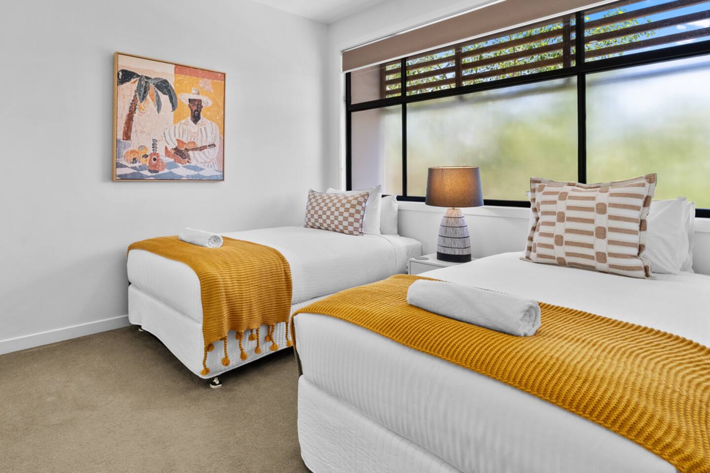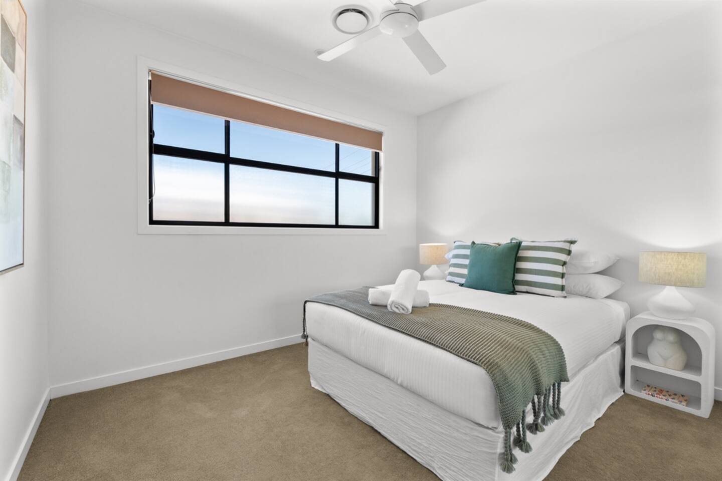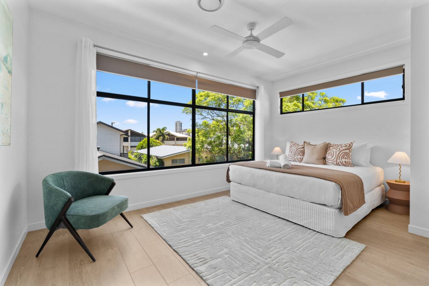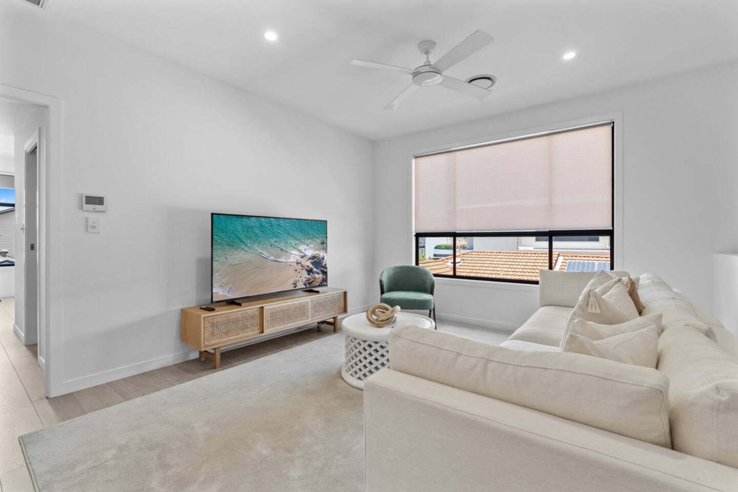 The vibe Bright, modern and coastal with brand-new designer furniture throughout—stylish, uncluttered, and genuinely comfy for families and small groups. Downstairs (living + entertaining) Open-plan kitchen & dining with a fully equipped kitchen (easy for group meals) Lounge with Smart TV for movie nights Built-in fireplace to keep things cosy in winter Dedicated office/workspace (perfect for remote work) Plunge pool + deck area for sunny afternoons Carpark on-site Ducted air-conditioning + fast Wi-Fi Upstairs (sleeping + second living space) Second living room with second Smart TV (great for kids/teens or two families sharing) 4 bedrooms (all with ducted A/C + built-in wardrobes): Master: King bed Bedroom 2: Queen bed Bedroom 3: Queen bed Bedroom 4: Two single beds Hotel-quality linen provided for every bed Brand-new beds & mattresses for that “just checked into a boutique stay” feeling Why guests love stays like this Walkable Palm Beach location near the sand, food and coffee—plus a pool, two living zones, and a proper workspace so everyone can spread out.
