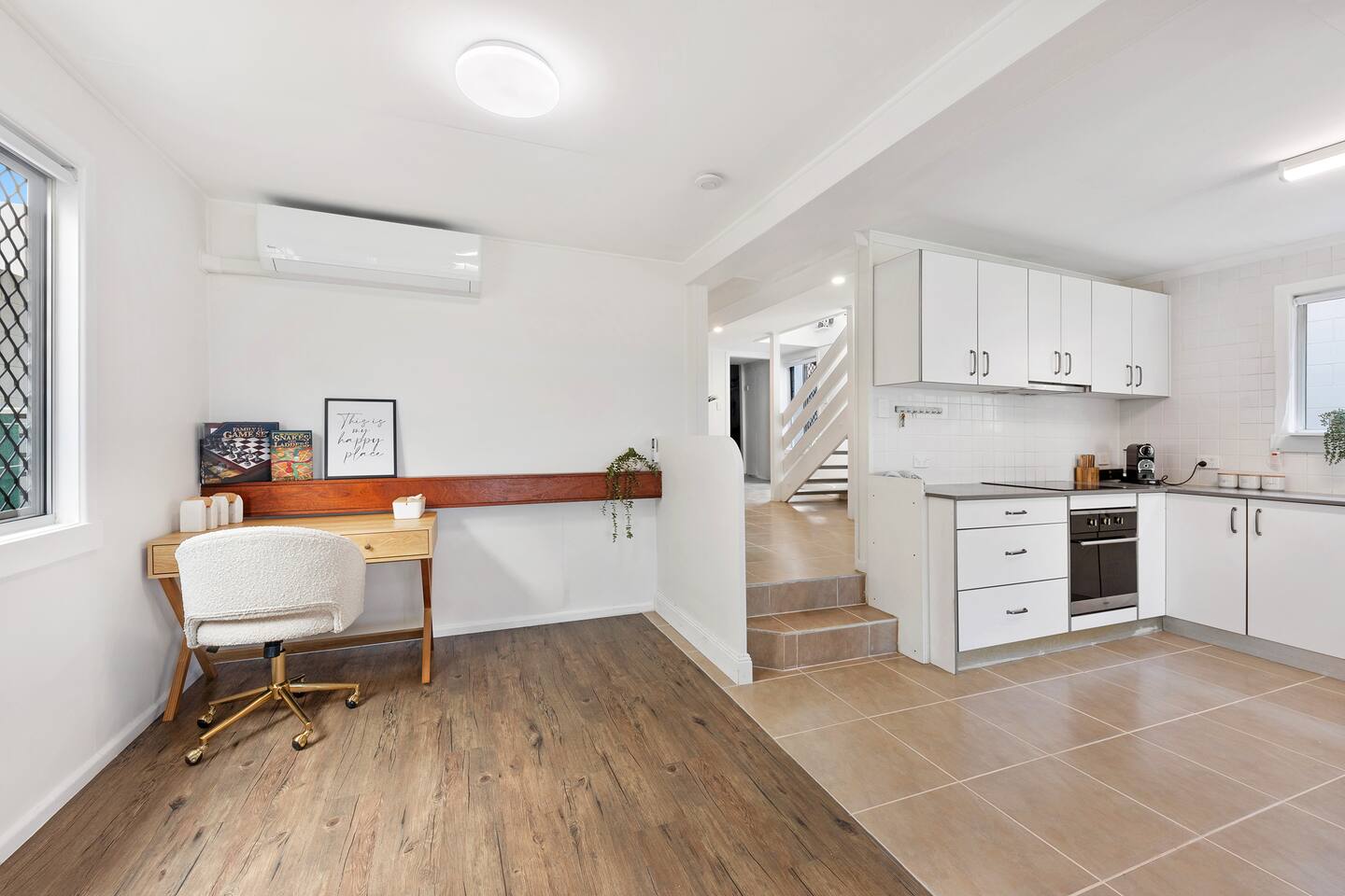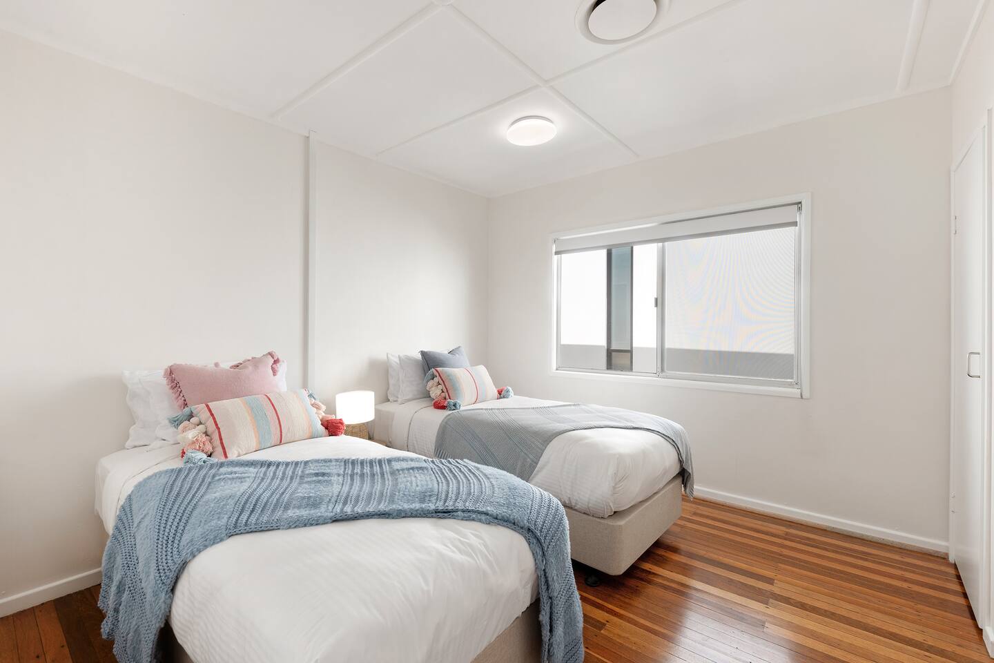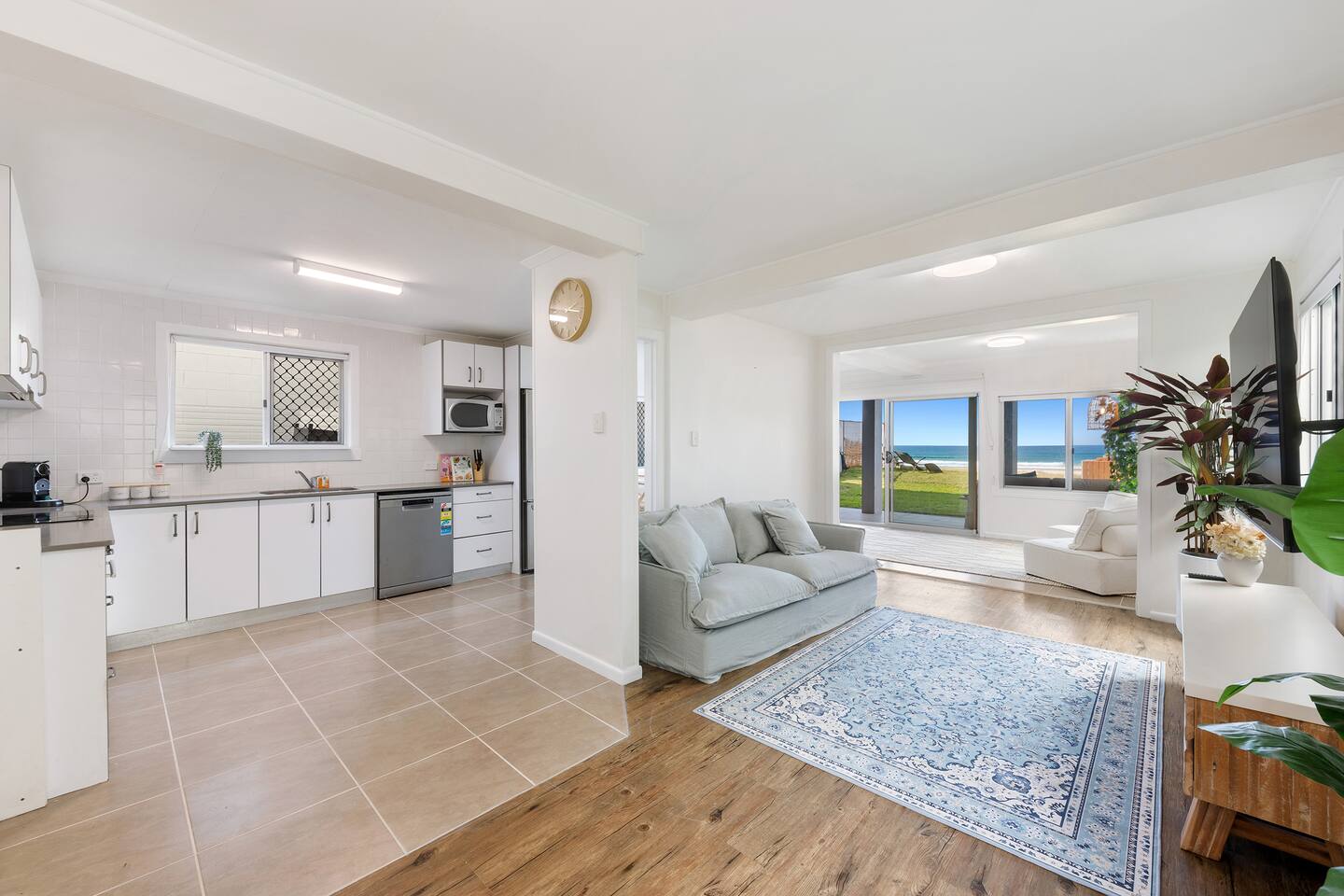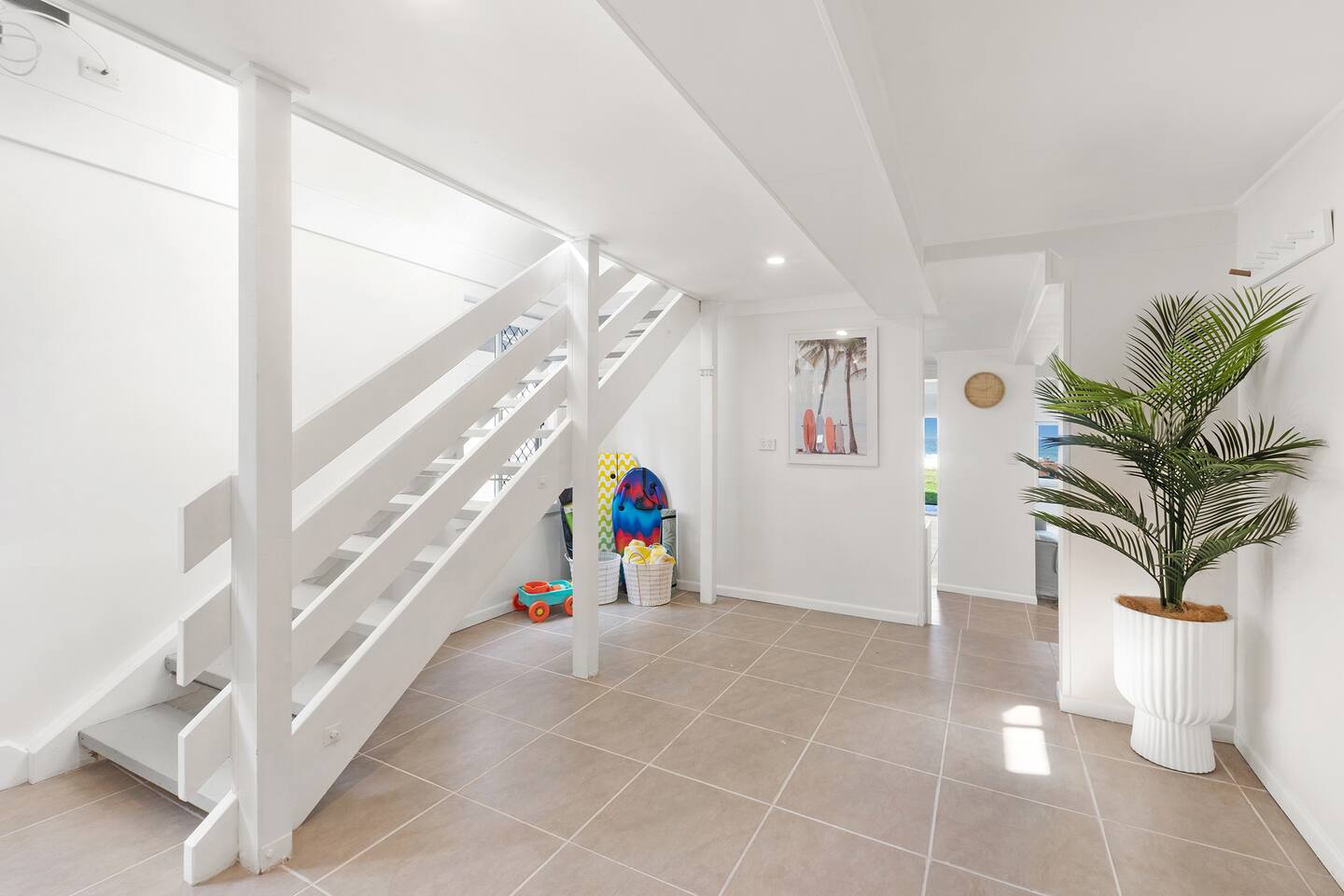 Welcome to your beachfront sanctuary on Jefferson Lane, Palm Beach—a perfect blend of luxury and coastal charm. This spacious 4-bedroom, 2-bathroom home offers everything needed for a relaxing getaway. The upper level features a stunning king bedroom with ocean views, opening onto a fully enclosed deck, perfect for enjoying a morning coffee or losing yourself in a good book. Upstairs, you'll also find two queen bedrooms and a fourth bedroom with two singles that can be joined to form a king, providing flexible sleeping arrangements for your group. Downstairs, the carefully styled open-plan living, dining, kitchen, and lounge areas create a seamless flow, ideal for socialising or unwinding. A dedicated workstation with a desk and office chair makes it easy to combine work with leisure. Step outside to the expansive front lawn, leading directly to the beach, with a secure fence to keep children safe. All furniture is brand new, reflecting a stylish coastal vibe, and the home exudes a sense of comfort and relaxation. Don’t wait—book now and experience the ultimate beachfront holiday on the Gold Coast. Enjoy watching the waves and relaxing with an afternoon cheese platter and cold drink at the same time. The perfect recipe for a fantastic getaway!