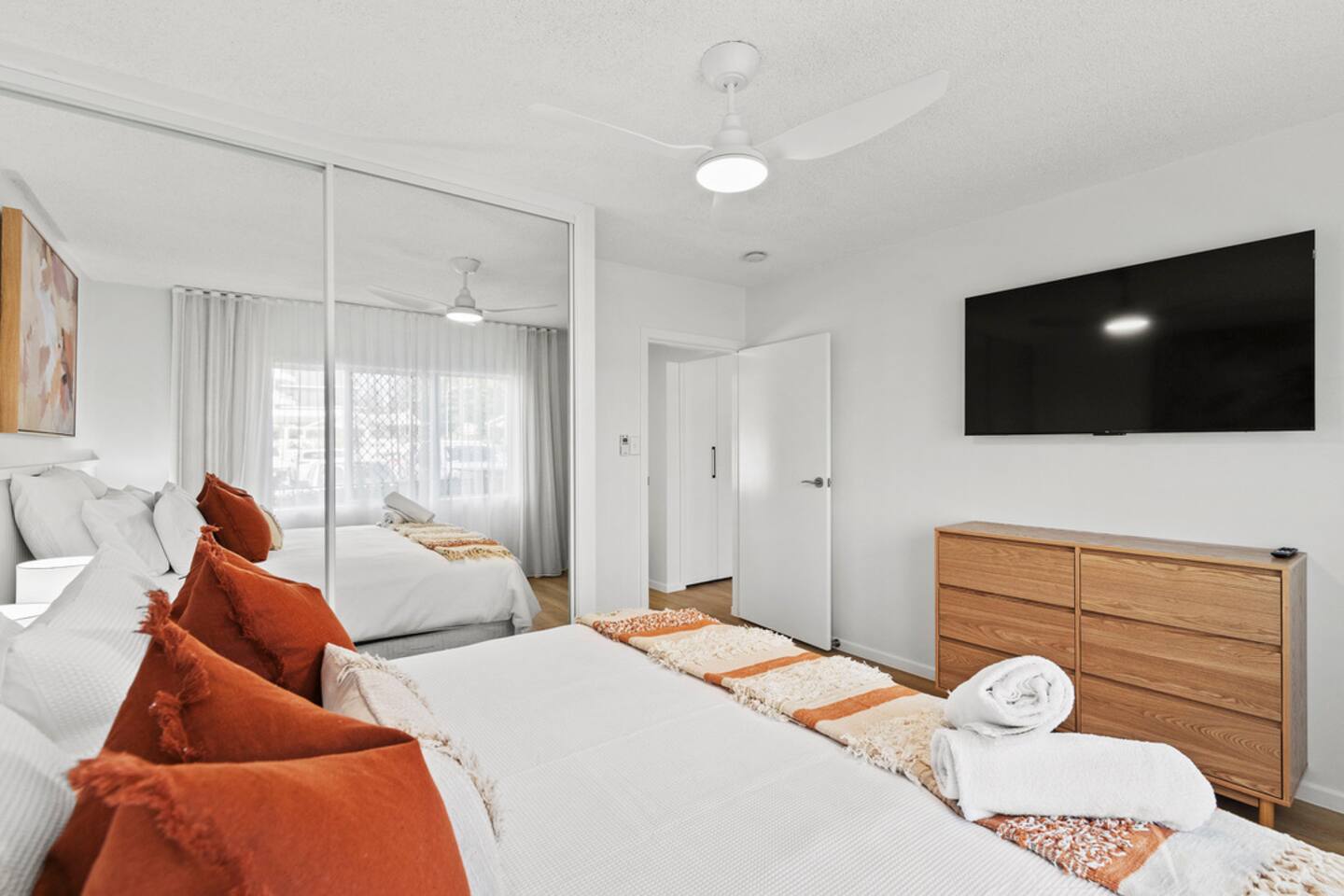 Step into comfort and simplicity at The Breeze, your effortless Burleigh beach escape. This newly renovated ground-floor apartment features two ultra-comfy king beds with hotel-quality linen, new plush bedding, and a thoughtful mix of hi-fi and lo-fi pillows to suit every sleeper. It’s the perfect setup for couples, friends, or a small family looking to unwind in style—without the hefty price tag. Enjoy meals at the dining table for four, or brew your morning cuppa at the coffee machine and tea station before crossing the road to the beach. The apartment includes a fully equipped kitchen for home-style meals, beach towels, air-conditioning, a smart TV, and free off-street parking—a rare bonus in this location. Designed for an easy, no-fuss getaway, The Breeze offers both comfort and convenience, with local management on hand to assist during your stay. Just a short stroll to Burleigh’s vibrant cafés, shops, and surf scene, you’ll be perfectly placed to enjoy everything this iconic beachside hub has to offer—at a price that keeps things breezy.
