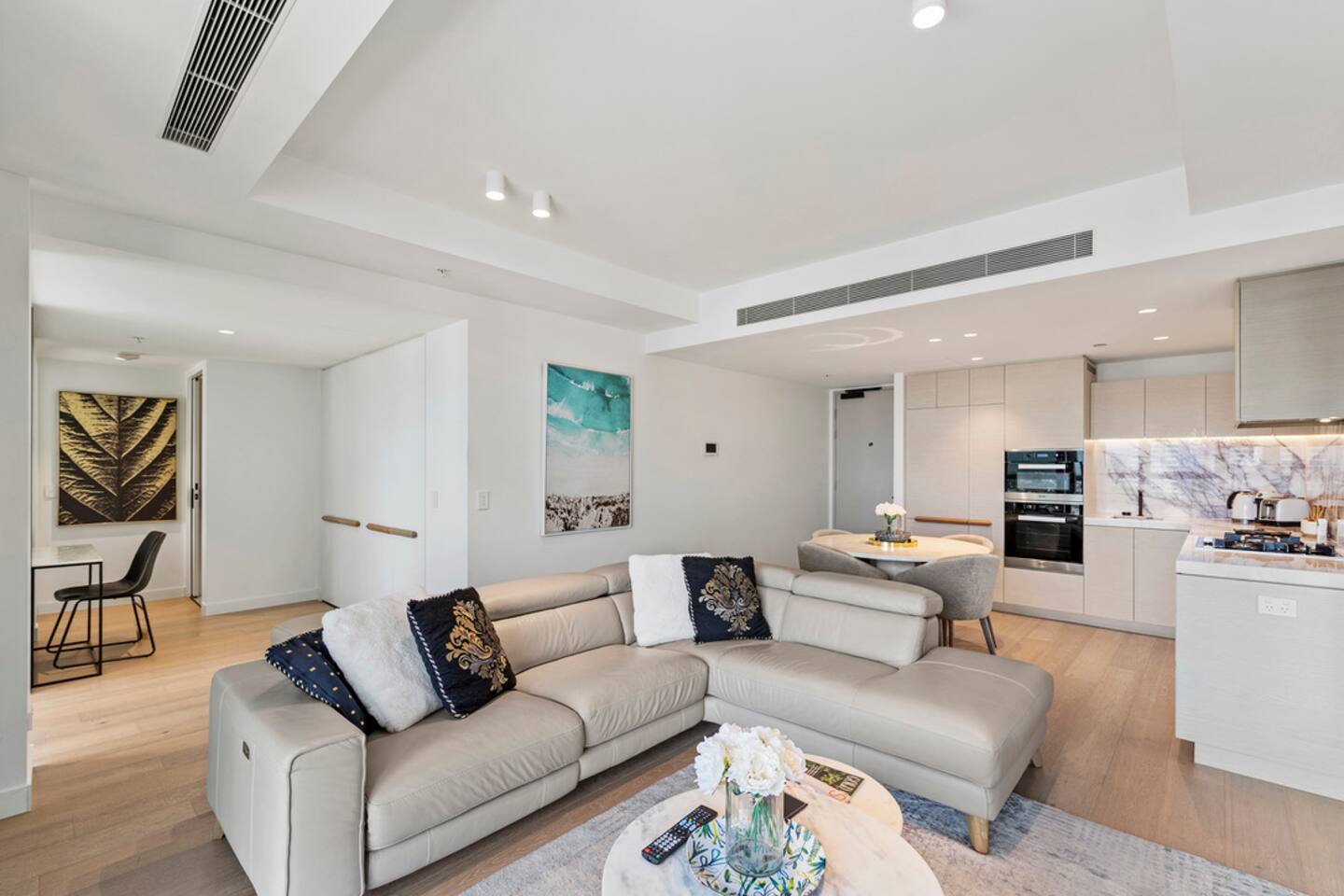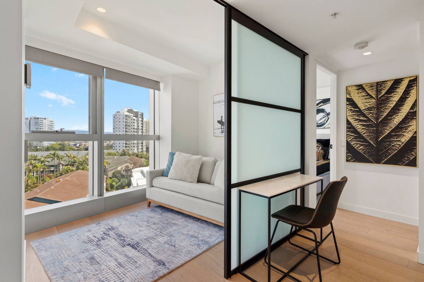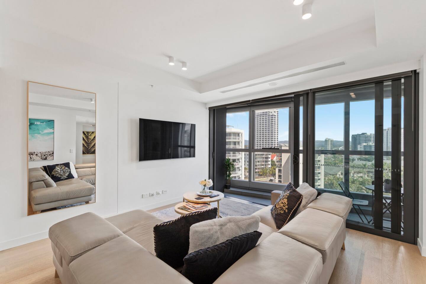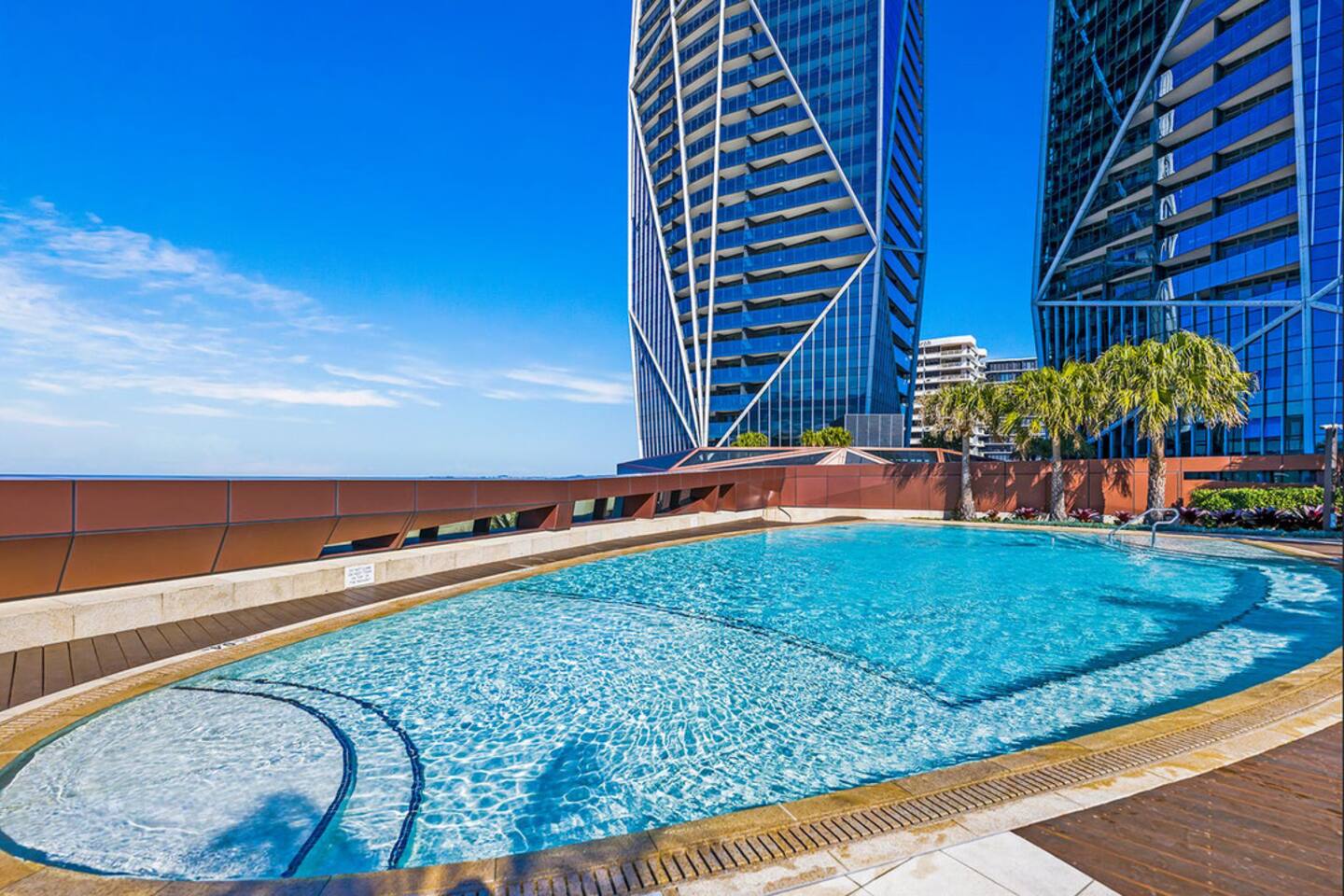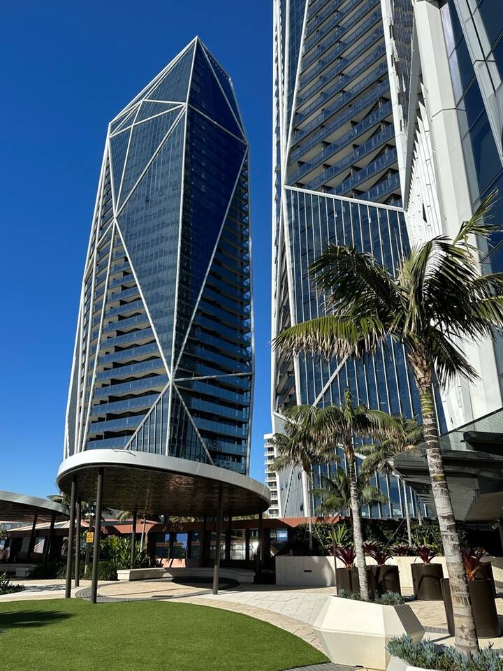 Located on Level 6 of the prestigious Jewel Residences / The Langham on the Gold Coast. Open-plan living & dining with modern finishes and access to a small balcony (table + chairs) overlooking the cityscape—perfect for morning coffee or sunset drinks. Fully equipped kitchen with quality appliances and everything needed for meals at home. European-style laundry (washer & dryer) to keep things fresh during longer stays. Dedicated workspace/desk ideal for remote work. Central location to beaches, dining and entertainment across Surfers Paradise. Sleeping arrangements 2BR (sleeps 4) Bedroom 1: Queen bed with premium linens. Bedroom 2: Queen Sofa be with premium linens On request Bathroom Contemporary bathroom with shower, toilet and vanity; sleek fixtures and quality amenities -Towels and complimentary starter kit of products provided. Guest access Resort facilities: Outdoor pools with swim-up bar, gym, sauna, steam room and spa. Concierge & conference rooms available within the Langham complex (subject to building availability/fees). Complimentary secure parking for one car. Amenities Inside the apartment Full kitchen (oven, cooktop, microwave, fridge, dishwasher) Coffee/tea setup Dining area & lounge Balcony w/ seating (city views) Bedroom with premium linens European laundry (washer & dryer) + iron/board Fast Wi-Fi & Smart TV Dedicated workspace/desk Air conditioning Building / resort Outdoor pools + swim-up bar Gym, sauna, steam room & spa Conference rooms (subject to availability) Secure parking (1 space)
