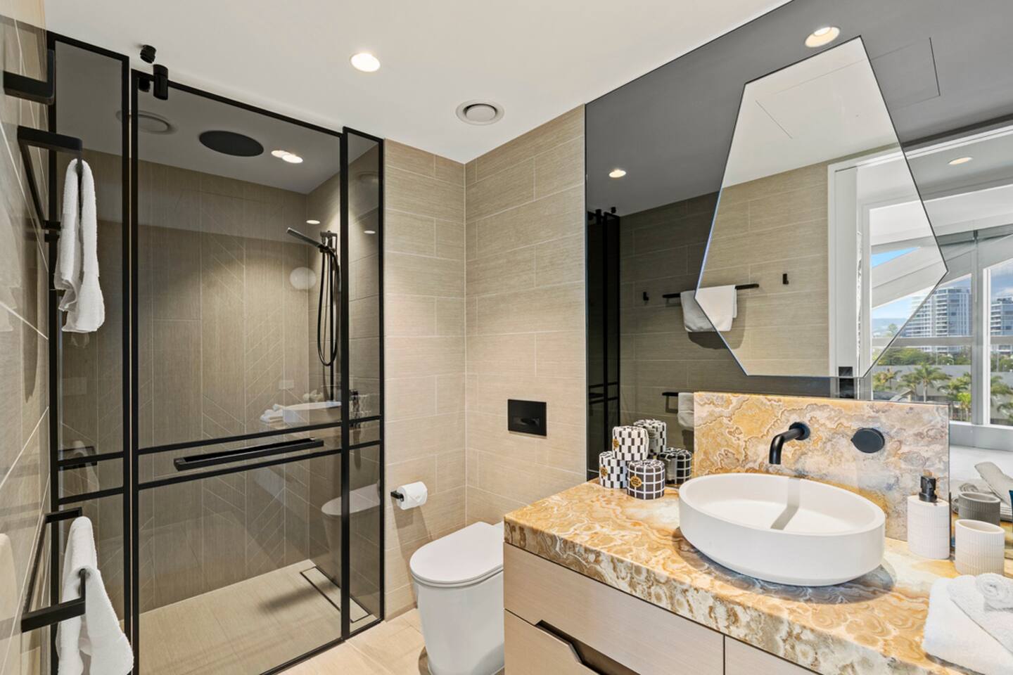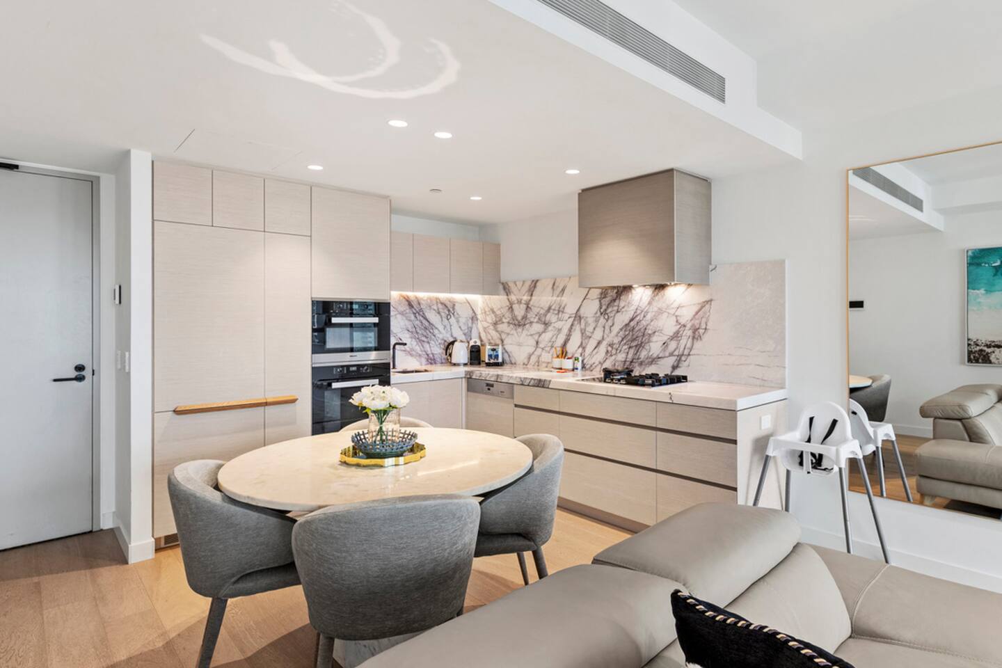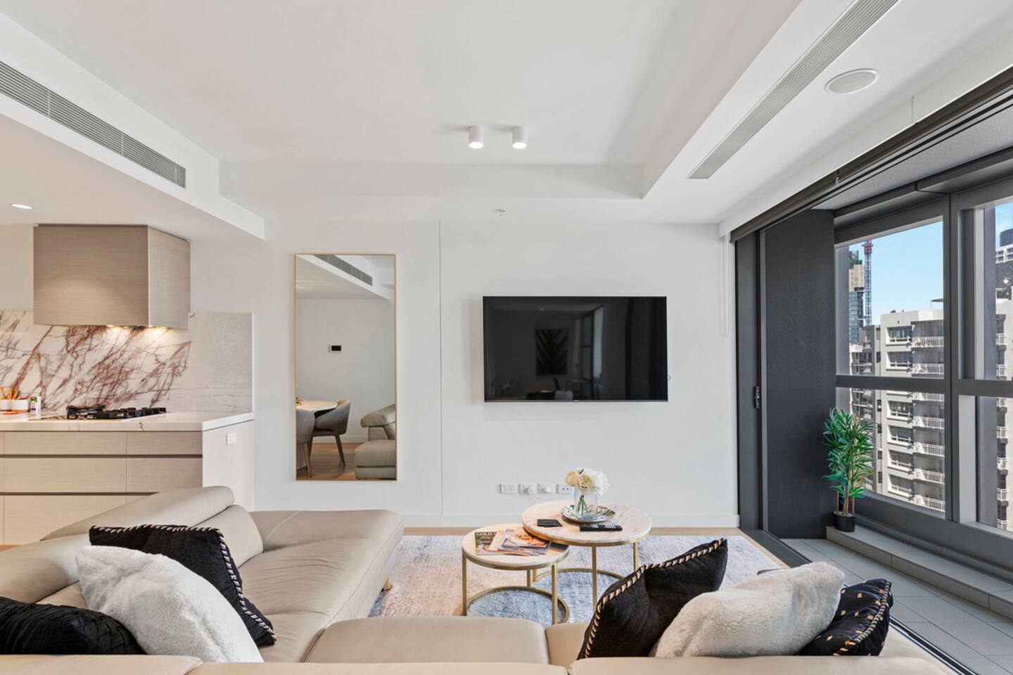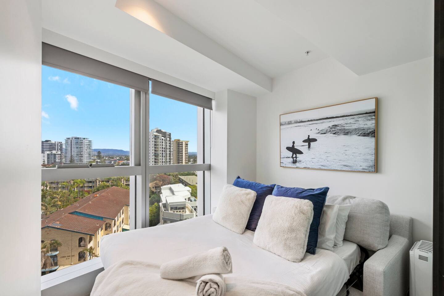 Located on Level 6 of the prestigious Jewel Residences / The Langham on the Gold Coast. Open-plan living & dining with modern finishes and access to a small balcony (table + chairs) overlooking the cityscape—perfect for morning coffee or sunset drinks. Fully equipped kitchen with quality appliances and everything needed for meals at home. European-style laundry (washer & dryer) to keep things fresh during longer stays. Dedicated workspace/desk ideal for remote work. Central location to beaches, dining and entertainment across Surfers Paradise. Sleeping arrangements 2BR (sleeps 4) Bedroom 1: Queen bed with premium linens. Bedroom 2: Queen Sofa be with premium linens On request Bathroom Contemporary bathroom with shower, toilet and vanity; sleek fixtures and quality amenities -Towels and complimentary starter kit of products provided. Guest access Resort facilities: Outdoor pools with swim-up bar, gym, sauna, steam room and spa. Concierge & conference rooms available within the Langham complex (subject to building availability/fees). Complimentary secure parking for one car. Amenities Inside the apartment Full kitchen (oven, cooktop, microwave, fridge, dishwasher) Coffee/tea setup Dining area & lounge Balcony w/ seating (city views) Bedroom with premium linens European laundry (washer & dryer) + iron/board Fast Wi-Fi & Smart TV Dedicated workspace/desk Air conditioning Building / resort Outdoor pools + swim-up bar Gym, sauna, steam room & spa Conference rooms (subject to availability) Secure parking (1 space)