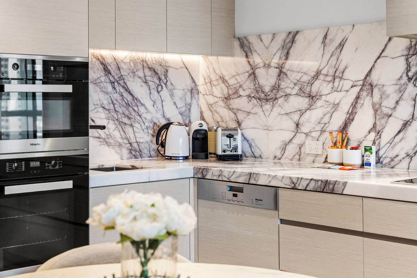 No room service available. Guests can use Uber Eats, DoorDash, Deliveroo, Menulog and meet drivers at the lobby/porte-cochère (building staff can’t accept deliveries).
