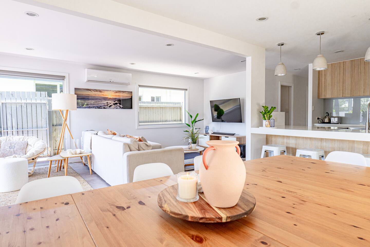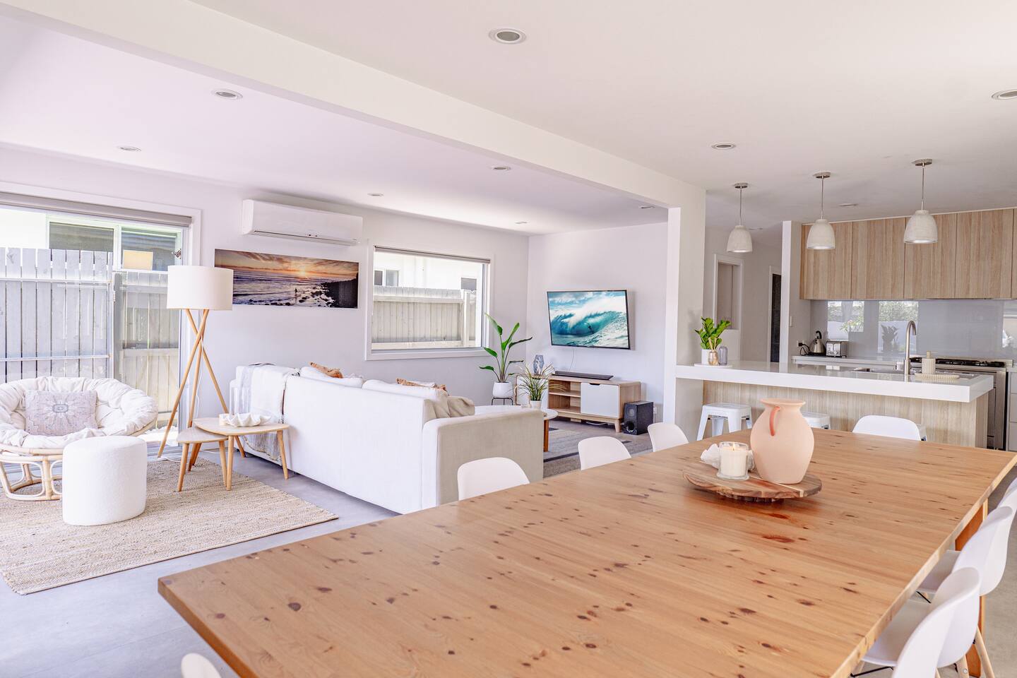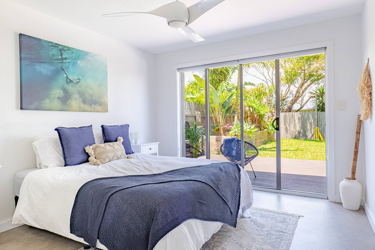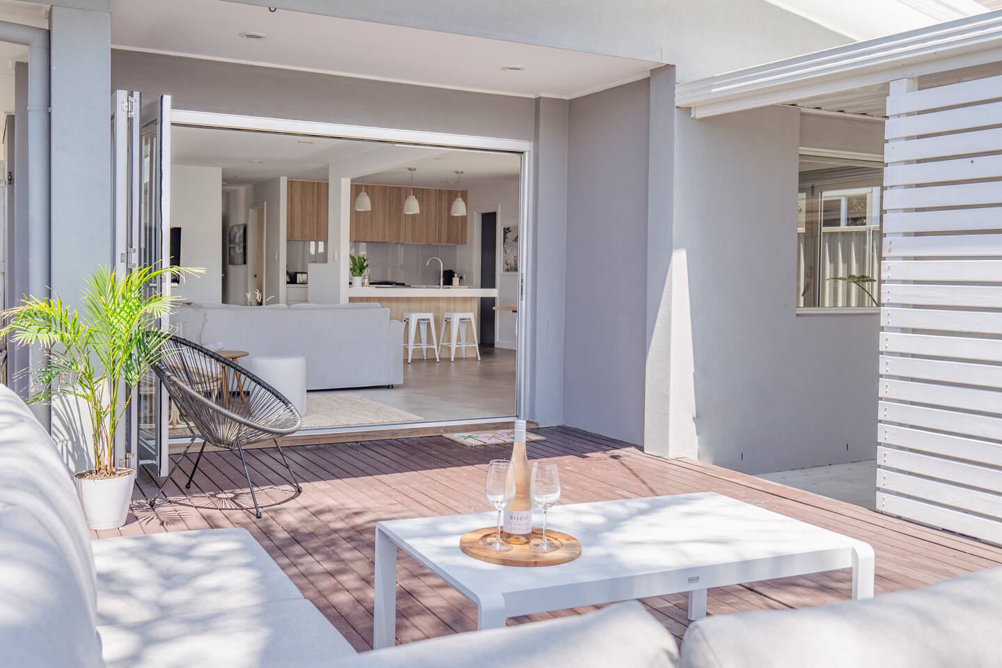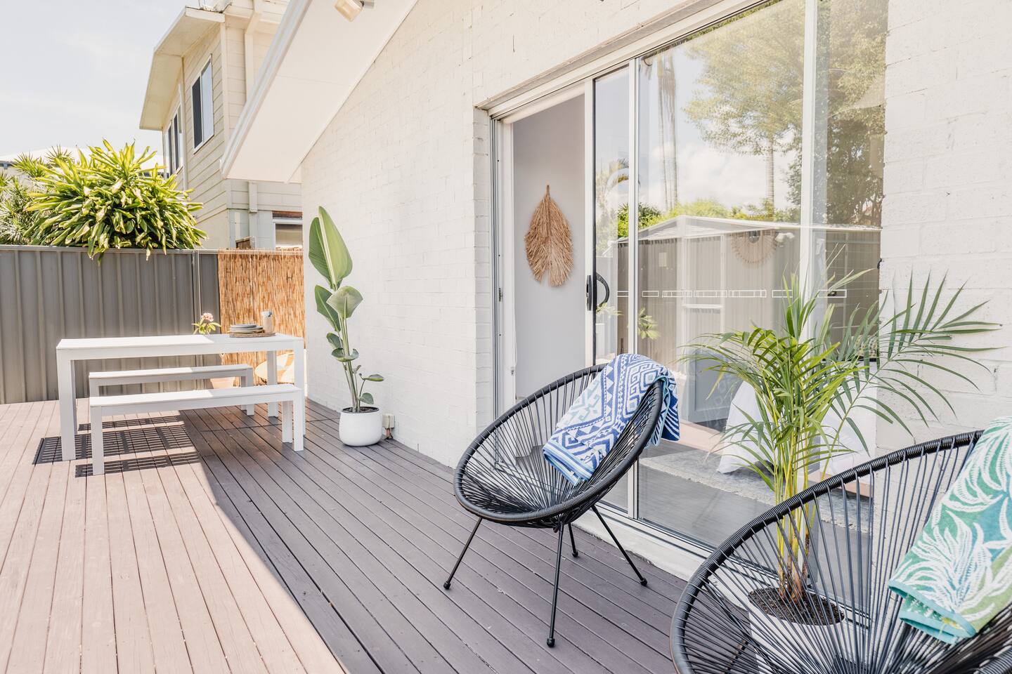 Enter the secluded sanctuary of The Palm House, where the bright and airy open-plan design melds effortlessly with natural materials and textures, enveloping you in comfort from the moment you step inside. Each element has been thoughtfully chosen to promote relaxation and a sense of peace. Imagine unwinding on the plush outdoor sofa with your favourite book, rinsing off in the outdoor shower post-surf, or igniting the BBQ for a delightful alfresco meal. Our space is designed for enjoying memorable dinners and unwinding with ease after adventurous days exploring the many attractions of the Gold Coast. Enjoy the seamless indoor-outdoor flow as bifold doors open from the living area onto the deck, creating a vibrant space perfect for entertaining. Families will appreciate the fully fenced property for security and a spacious grassy backyard where children can frolic freely. With four generously sized bedrooms, the tranquility of the home is shared amongst all guests. An office desk is also available for those needing to stay connected with work. The master suite is a haven of luxury, complete with a spacious bathroom and a walk-in wardrobe. Indulge in the elegance of our beautifully styled bathrooms. The main bathroom features a bathtub ideal for unwinding after your day’s adventures. Our state-of-the-art kitchen is fully equipped, including dual ovens and a butler’s pantry, ensuring that meal preparation is a pleasure, not a chore. Location Everything you need is just around the corner. Supermarkets, shopping, and cozy cafes are merely minutes away. Golf enthusiasts can walk to Burleigh Golf Club in two minutes. Experience the vibrant Miami Marketta night markets or the lively nightlife and dining scenes at Burleigh and Nobby Beach, all within a ten-minute drive. The renowned Pacific Fair Shopping Centre is also a short seven-minute drive from the house. For your convenience, a double garage is available for secure parking of your vehicles. Your Stay Whether you’re here for relaxation or work, The Palm House offers a stylish and tranquil environment to enhance your stay in Miami. We can’t wait to welcome you to your home away from home in Miami Beach! Guest Access Guests will have exclusive access to the entire home and garage. Please Note Our lovely home is situated in a quiet neighbourhood. We are committed to maintaining a peaceful atmosphere. Parties are strictly not permitted and non-compliance will result in eviction. Embrace the warmth and charm of The Palm House during your next visit to Miami Beach!