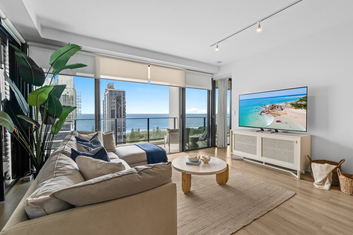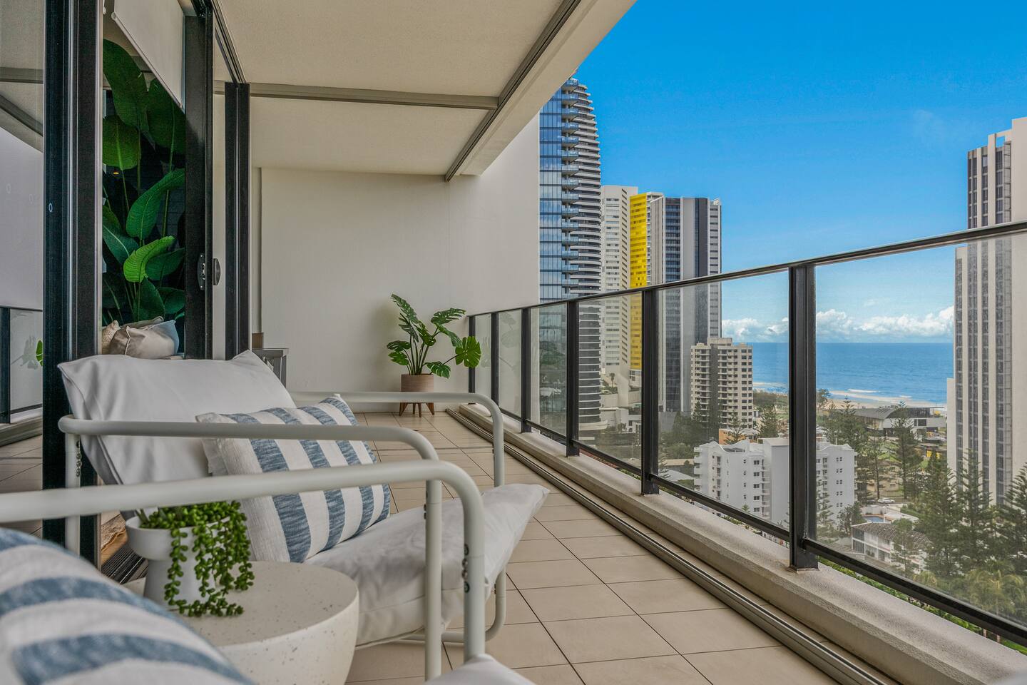 Welcome to Ultra Broadbeach – Level 16 Coastal Luxury Step into your dream Broadbeach escape. This beautifully designed open-plan apartment on Level 16 combines expansive ocean views, premium comfort, and thoughtful touches to deliver a truly effortless holiday experience. Master Retreat Your master suite is a haven of relaxation. Enjoy: Plush king bed with brand-new hotel-quality bedding Plantation shutters for privacy and ambience A generously sized ensuite with bathtub + walk-in shower A huge walk-in robe Private deck access overlooking the ocean Sleep deeply, wake refreshed, and step straight out to the sea breeze. Second Bedroom Located on the opposite side of the apartment for complete privacy: Two king single beds Its own ensuite bathroom Perfect for families, friends, or couples travelling together. Expansive Wraparound Deck A large deck surrounds the entire front of the apartment, capturing panoramic ocean views. Enjoy your morning coffee, sunset drinks, or simply relax while the sea breeze rolls in. Relaxed Open-Plan Living At the centre of the apartment: A large, comfortable lounge, Smart TV Beautiful beach views from the living space The layout flows naturally from living to dining to the oceanfront deck. Indoor + Alfresco Dining The fully equipped kitchen includes: Indoor dining table Outdoor alfresco dining setting Quality appliances & full cooking amenities Perfect for those who love to cook and entertain on holidays. Full Laundry A dedicated laundry offers: Washer, Dryer, Drying rack Ideal for longer stays and families. Luxury Resort Facilities Ultra Broadbeach offers some of the most pristine facilities in the area, including: Heated pool + kids’ pool Spa, sauna & steam room Fully equipped gym BBQ area Large landscaped relaxation spaces Function room Two beach access points Stroll back from the beach, rinse off in the outdoor shower, and slip into the spa to watch the sunset — pure holiday bliss. Parking Tandem parking on Level B1 offers secure and convenient access during your stay. Perfect Broadbeach Location Ultra Broadbeach is positioned in one of the Gold Coast’s most desired neighbourhoods. Walk everywhere: Pristine beaches World-class eateries & pastry shops Bars & wine lounges Pacific Fair Shopping Centre The Star Casino Kurrawa Park & beachfront walking tracks It’s truly the ideal “set and forget” holiday — everything moments from your door. It’s a world-class coastal lifestyle, right at your doorstep.