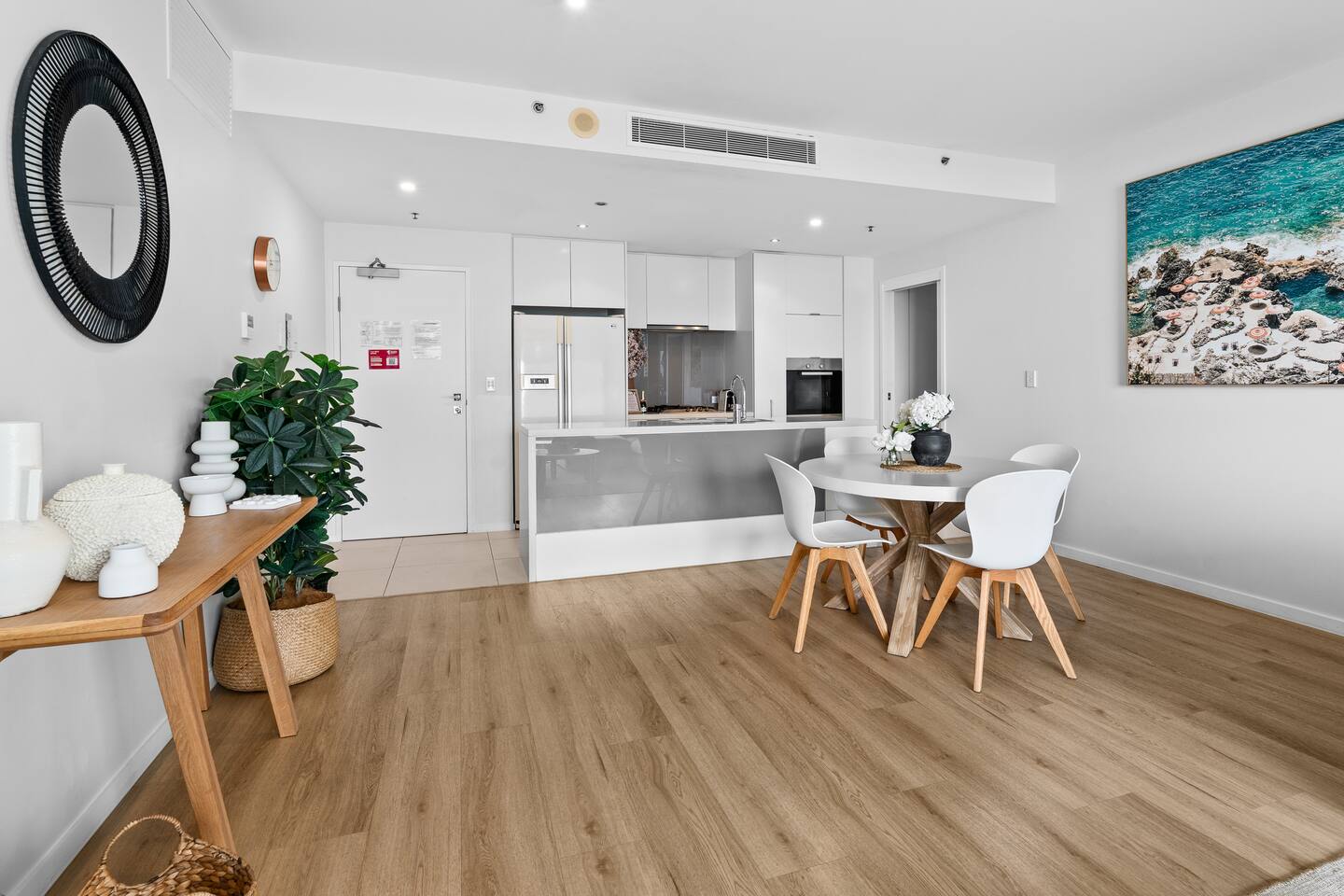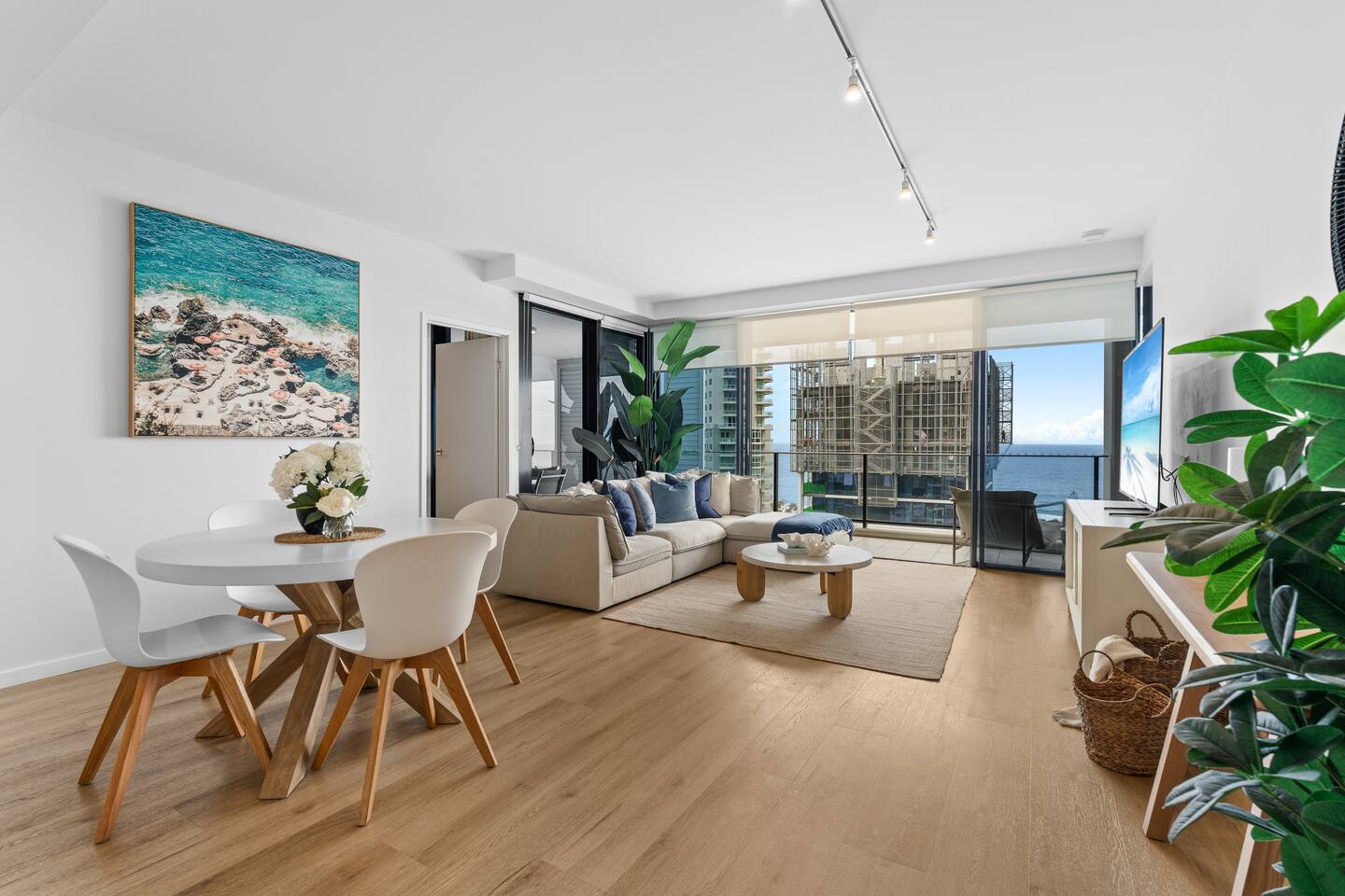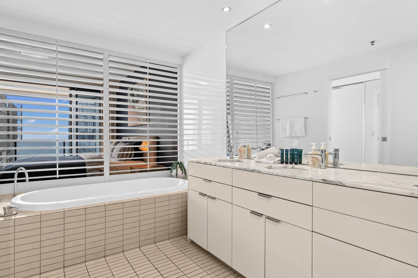 Guests have full and exclusive access to the entire apartment throughout their stay. This includes both bedrooms with ensuites, the open-plan living and dining areas, the fully equipped kitchen, wraparound ocean-view deck, and the internal laundry. You will also have access to both dedicated parking spaces in the secure tandem car park on Level B1. All resort-style facilities within the Ultra Broadbeach complex are available for your use, including the pool, kids’ pool, spa, sauna, steam room, gym, BBQ area, function room, landscaped relaxation spaces, and the two convenient beach access points. Enjoy the freedom of the whole space and make yourself completely at home.